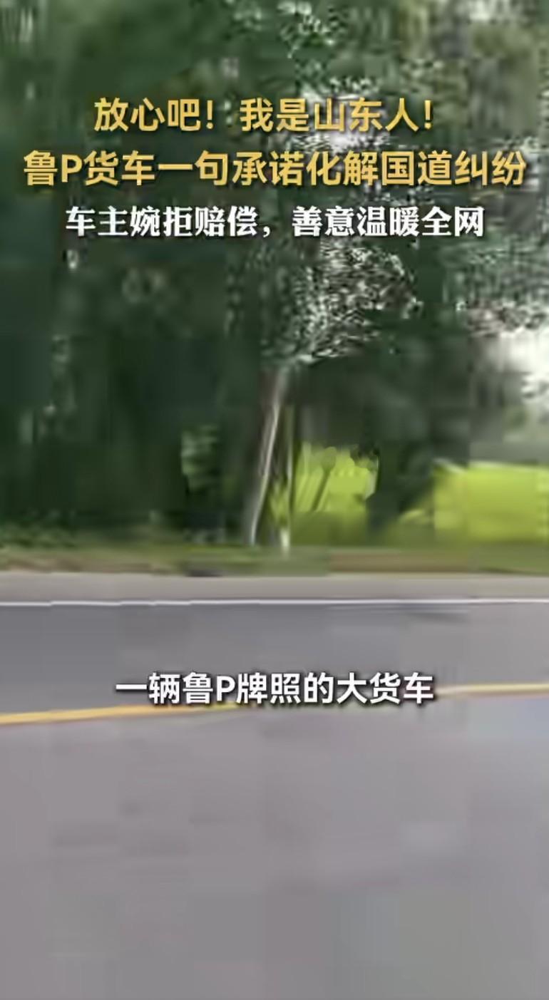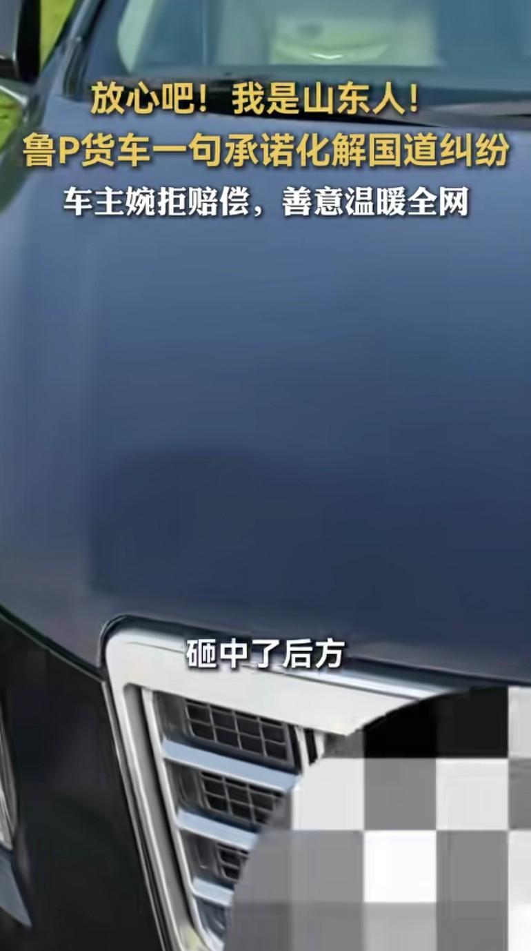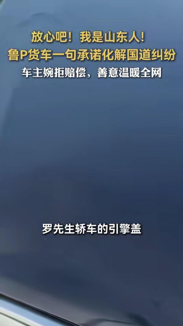 一句“我是山东人”,照见信任与善意的光芒 在扬州345国道的寻常一日,一场意外本可能引发纠纷,却因一句质朴的承诺,成为全网暖心的注脚。 鲁P牌照的大货车行驶中,轮胎意外脱落,砸中后方罗先生轿车的引擎盖。面对赔偿事宜,货车司机没有推诿,而是留下联系方式,坚定地说:“放心吧!我是山东人!” 这短短一句话,如同密钥,瞬间解开了罗先生心中的疑虑——在他看来,“山东人”三个字背后,是无需押金的担当,是值得托付的诚信。 后续修车时,罗先生切实感受到这份信任的重量。当货车司机主动联系赔偿,他婉拒了——这场因意外结下的缘分,早已超越修车本身的价值。在罗先生眼中,这份陌生人之间的信任,比金钱更弥足珍贵。 而这则故事在网络发酵后,更引发了无数共鸣。来自四川的网友留言“和山东人做生意没毛病,只要你说你是山东人,我就信你”,江苏网友也直言“兄弟,山东人你不用怀疑”。一句“我是山东人”,不仅是个体的承诺,更成为一个群体品格的生动注脚,让“诚信”“厚道”的光芒,温暖了整个网络空间。 在快节奏、充满不确定性的当下,这份因意外诞生的信任,恰似一股清流。它告诉我们,哪怕在陌生的际遇里,一句质朴的承诺、一份坦诚的担当,足以击穿隔阂,让人与人的联结变得简单而温暖。而这份超越金钱的善意,也终将在更多人心中,种下信任的种子,让社会的底色愈发明亮。