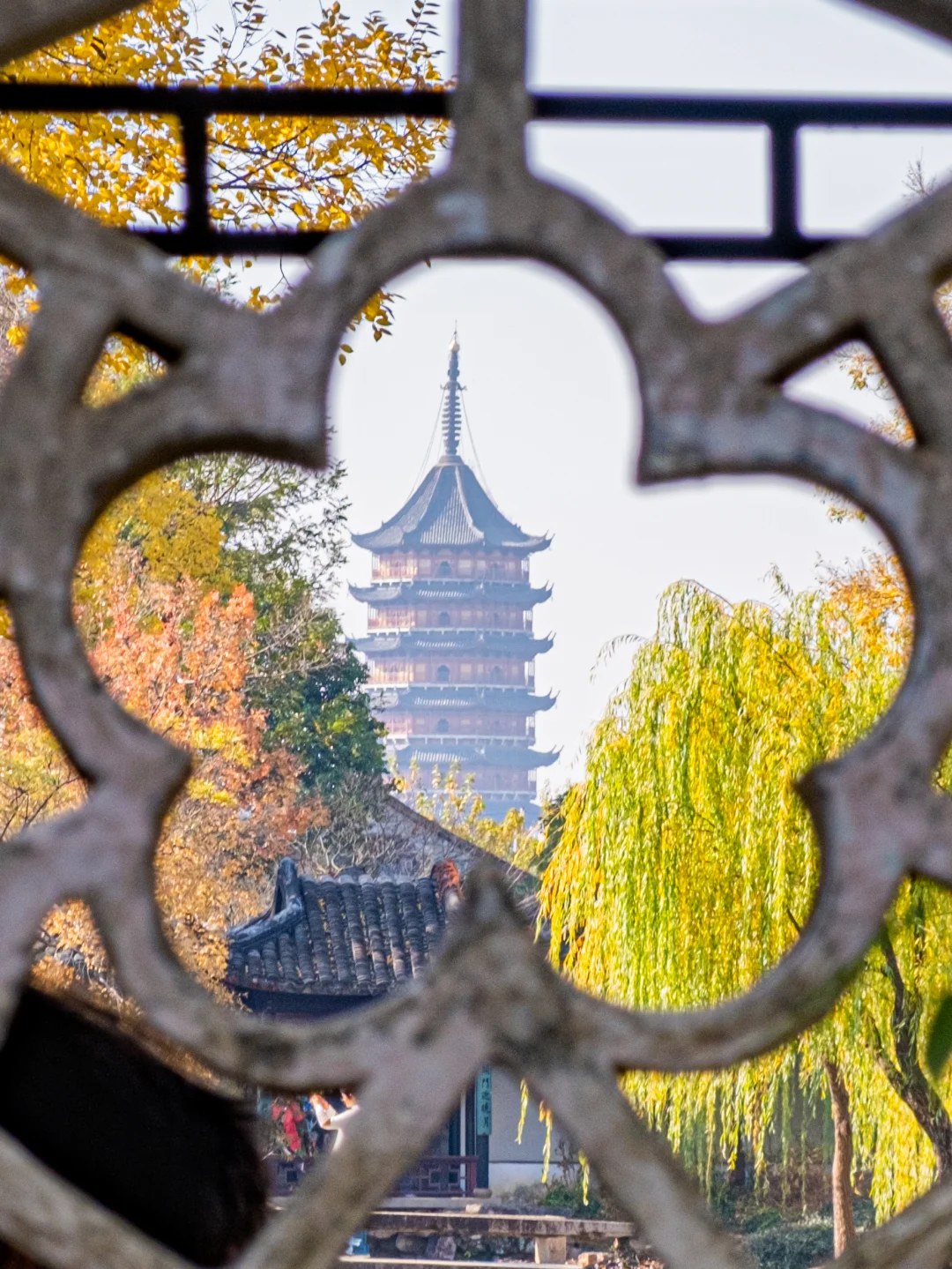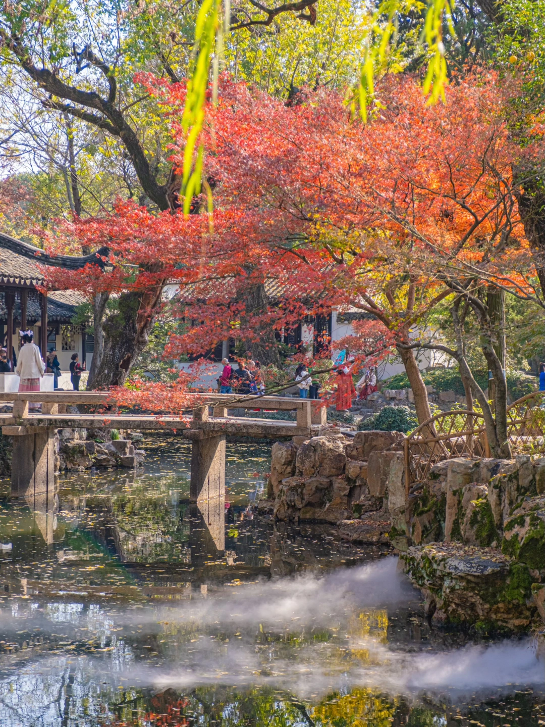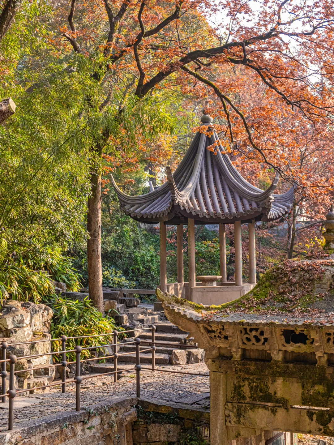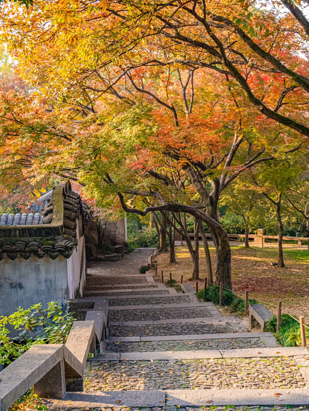 亭台轩榭与秋色相映,一步一景,每个转角都想驻足停留