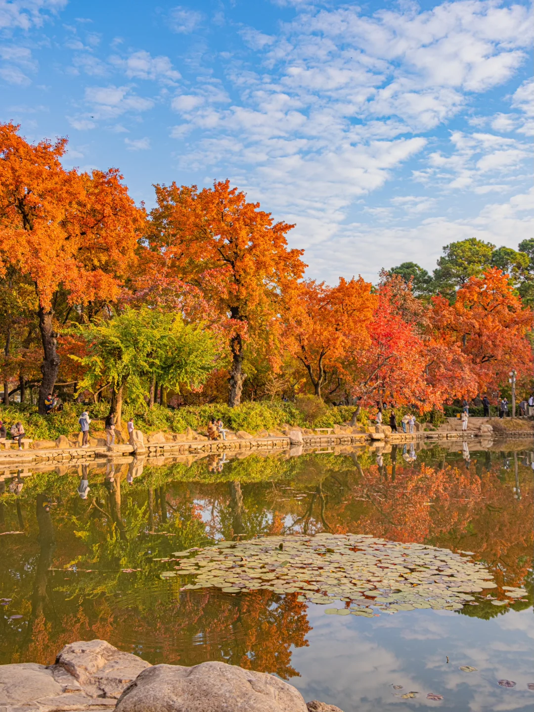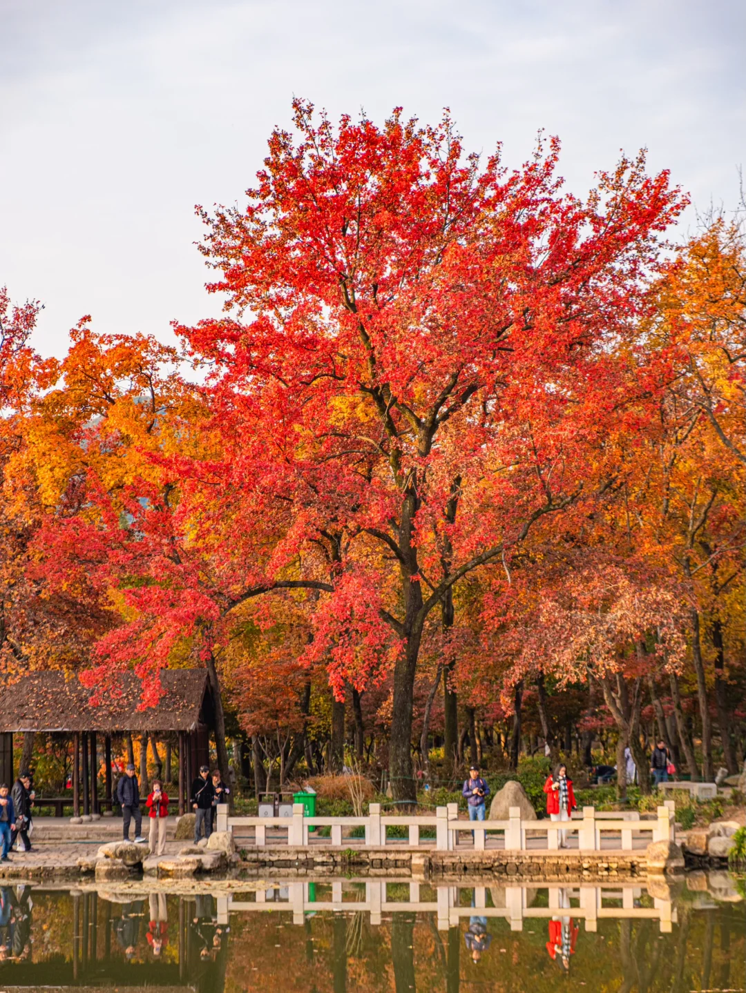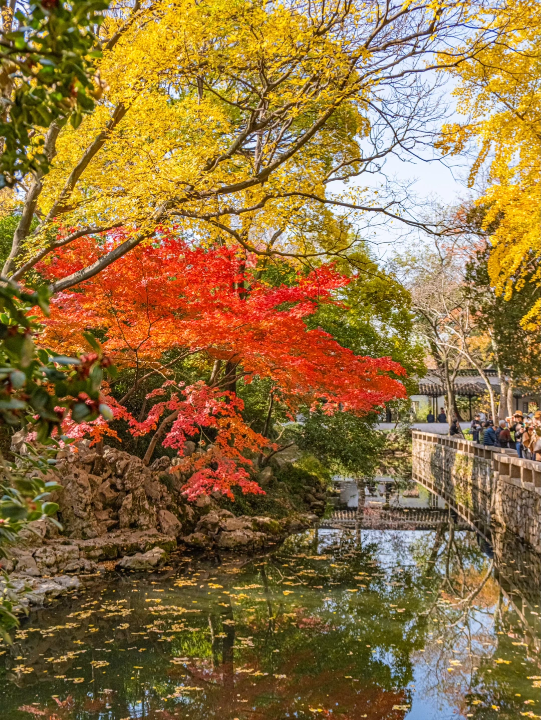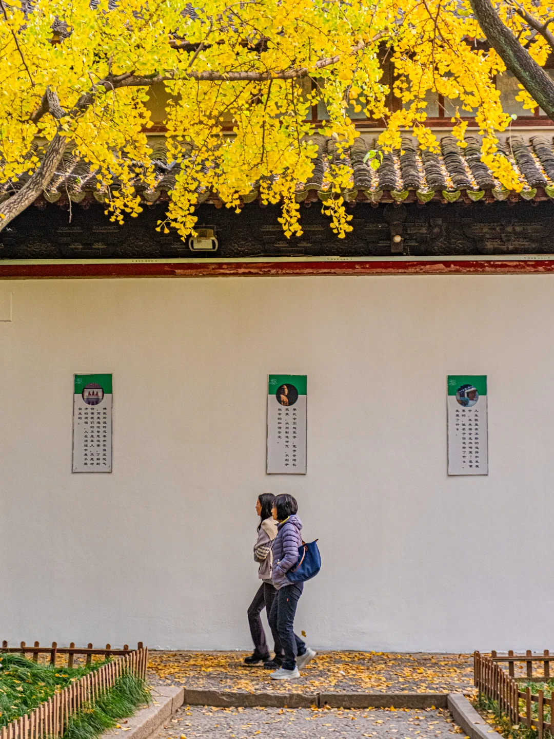 苏州赏秋天花板!南门入口的银杏大道灿烂如金,枫叶层林尽染美到失语