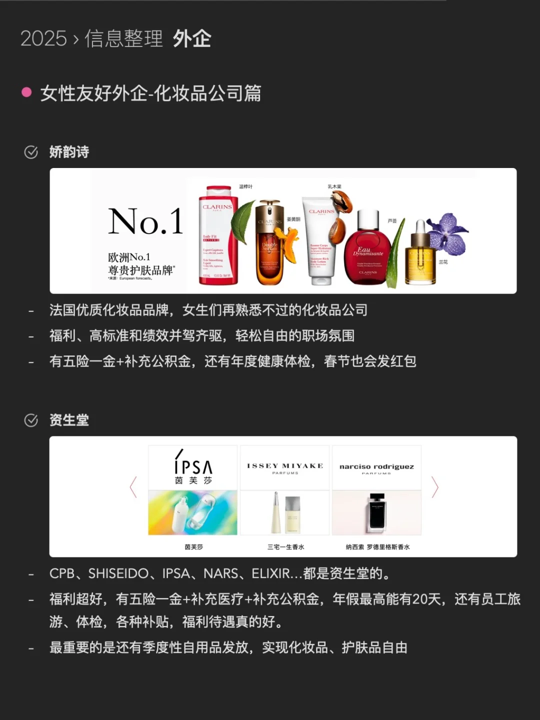 每个爱美的女孩子大概都幻想过进入化妆品公司工作吧,毕竟,谁能拒绝“化妆品自由”的快乐呢 . ✅美妆公司=女生的神仙公司 最快乐的就是—化妆品自由,定期发放free goods,还有超底员工内购价,大牌口红、护肤品随便买 . ✅美妆外企=福利buff叠满的情司 夏天每周多放半天假,一周可以居家办公两天,每个季度都有新品发放 . 坚持日更✊🏻,帮大家在找工作路上顺利拿到offer! .