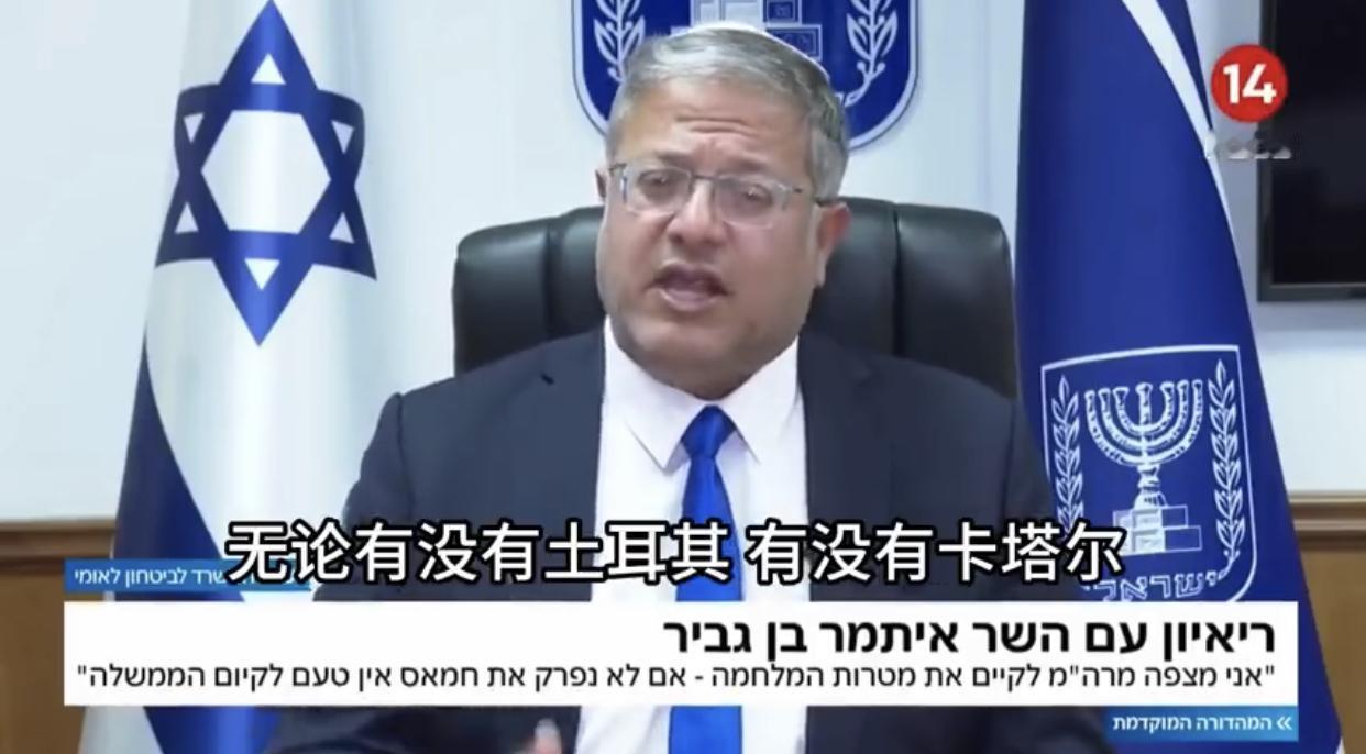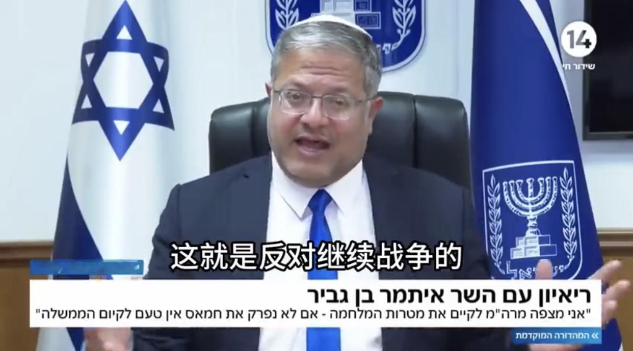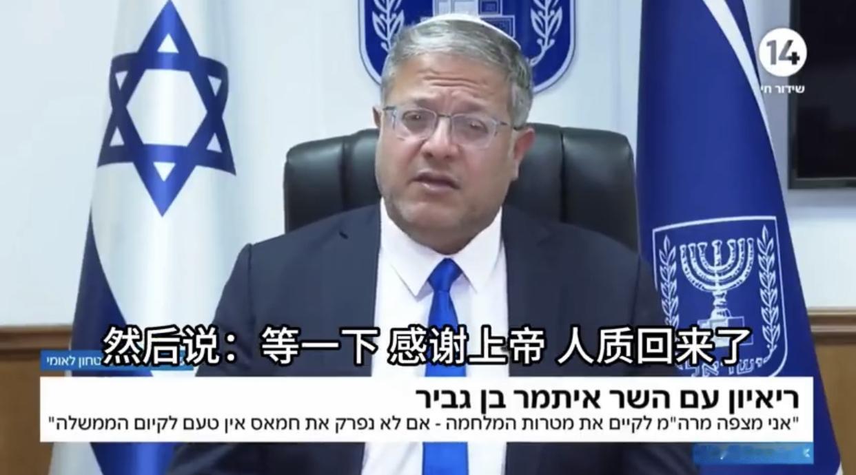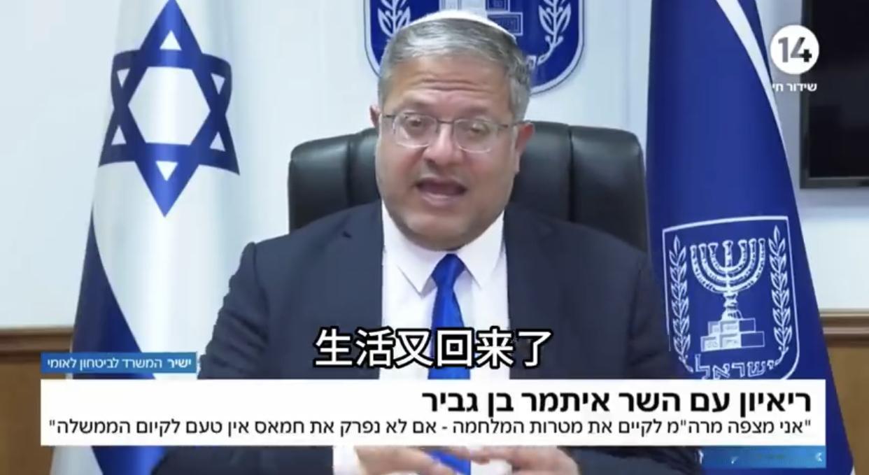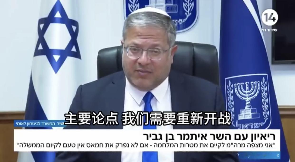 以色列国家安全部长本·格维尔表示:既然人质已经获得释放,那么为了彻底消灭哈马斯,