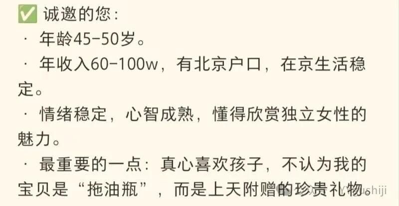 82年的东北小仙女相亲,要求男方年收入60-100万,年龄45岁左右,北京户口。