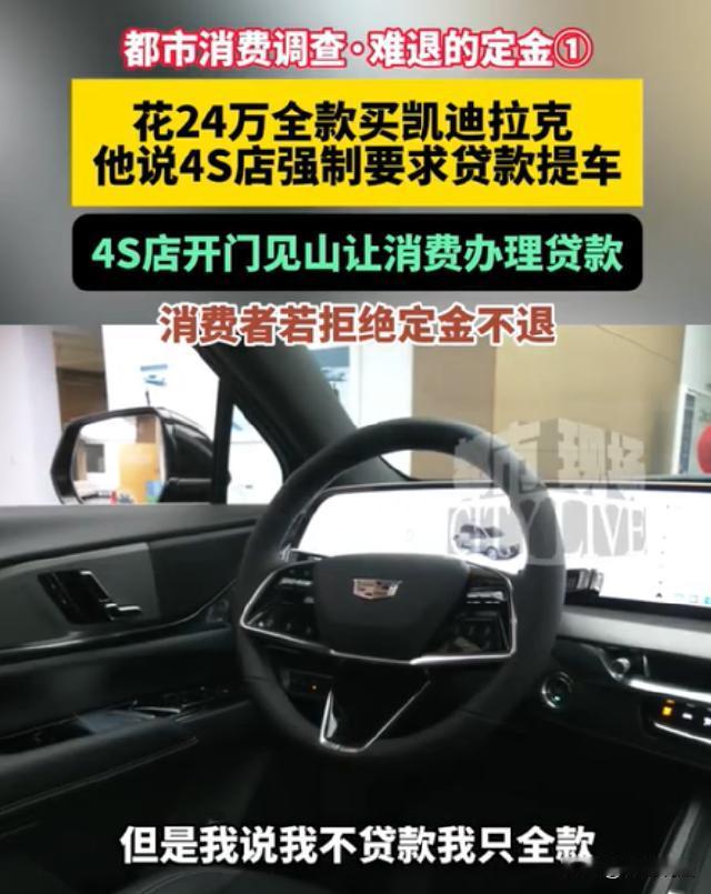 江西南昌,男子经过某4S店时,发现心仪的车辆正在打折,当即付了1万定金。几天后准备提车时,销售告知必须贷款才能正常提车,男子当场拒绝表示就想全款买车,对此销售表示车提不了、定金不退。男子气急,这不明摆着店大欺客嘛,最后的处理结果令人解气。 近日,都市现场报道了这则某男子在4S店订车时,遭遇销售强制要求贷款买车的新闻,事情的经过是这样的。 占先生一直有换车的打算,手里头的资金也够,只是心仪的车型目前的折扣力度不是很大,他便选择了继续观望。 十月九号这天占先生外出时,意外看到某4S的广告牌上写着之前看中的车辆有很大的优惠,心动之下便决定进去看看情况。 在说出自己想要的车型后,销售表示这款车确实店里有活动,可以给到一个十分优惠的报价。 最后经过讨价还价,销售最终给出了24万的报价,这确实比之前了解的价格便宜了好几万,占先生果断付了一万的定金,双方约定几天后就可以正常提车。 十月十三号这天占先生接到销售的通知,称手续都办完了,过来付款就可以提车了。 占先生兴冲冲的赶到4S店,准备付款时被销售拦住了,对方表示必须贷款才能提车。 闻言占先生感到十分不解,明明自己有全款的能力,为什么要贷款呢? 销售表示可以提供免息贷款,占先生不用支付额外的费用。 尽管这样占先生仍坚持要全款买车,再说全款或贷款那是自己的事,销售这边为什么一定要贷款呢,这里面肯定有猫腻。 不想节外生枝的占先生坚持要全款,这时候销售突然变了脸,表示不贷款的话,车子就不卖了,之前的1万定金就当做是违约金。 占先生当然不肯接受,当场和销售争论了起来。 不管占先生如何讲道理,甚至表示要报警,销售依然坚持己见,要么贷款,要么违约。 见对方如此蛮横不讲理,占先生决定曝光此事。 在舆论的压力下,4S店很快有人联系了占先生,他们解释称之所以要贷款,是因为该车的总价低于市场价,总部那边不同意全款出售,只能通过贷款的方式才能通过总部审核并销售。 对于这个解释,占先生是一个字都不信:都提供免息贷款了,那全款和贷款的金额都一样,压根就没有区别,肯定是有其他不知道的套路在等着自己。 占先生现在的诉求件很简单:要么全款提车,要么退定金。 那么,从法律角度来讲,该如何认定这件事呢? 1、如何评价4S店的行为? 根据《民法典》第五百八十七条规定:债务人履行债务的,定金应当抵作价款或者收回。给付定金的一方不履行债务或者履行债务不符合约定,致使不能实现合同目的的,无权请求返还定金;收受定金的一方不履行债务或者履行债务不符合约定,致使不能实现合同目的的,应当双倍返还定金。 该事件中销售在收取定金时,没有明确告知占先生需贷款才能提车,侵犯了消费者的知情权,其行为构成了明显违约,4S店作为收取定金的一方,没有履行正常提车的约定,除了要退还1万元定金,还需双倍返还定金。 2、如何评价占先生的行为?他将如何维权? 根据《消费者权益保护法》第九条规定:消费者享有自主选择商品或者服务的权利;消费者有权自主选择提供商品或者服务的经营者,自主选择商品品种或者服务方式,自主决定购买或者不购买任何一种商品、接受或者不接受任何一项服务;消费者在自主选择商品或者服务时,有权进行比较、鉴别和挑选。 占先生作为消费者,完全有权根据自己的意愿选择付款方式,当时交1万定金的意愿就是全款买车,4S店已经尊重消费者的想法正常交车。 事后销售在占先生拒绝贷款后,又以不贷款就不交车、不退定金为由相威胁,明显侵犯了消费者的自由选择权,占先生完全有权撤销交易。 如果4S店继续要求占先生贷款,或者不肯退定金,占先生可以到有关部门投诉,要求4S承担违约赔偿责任;如果投诉无果,占先生也可以提前诉讼,依法维权, 最终,尽管调解4S店最终退还了占先生的1万元定金,关于后续的赔偿占先生也表示不想再折腾了,他也搞不懂就想全款买个车,怎么还会出现这样的事... 那么,对于4S店的行为你有什么看法呢?评论区见!