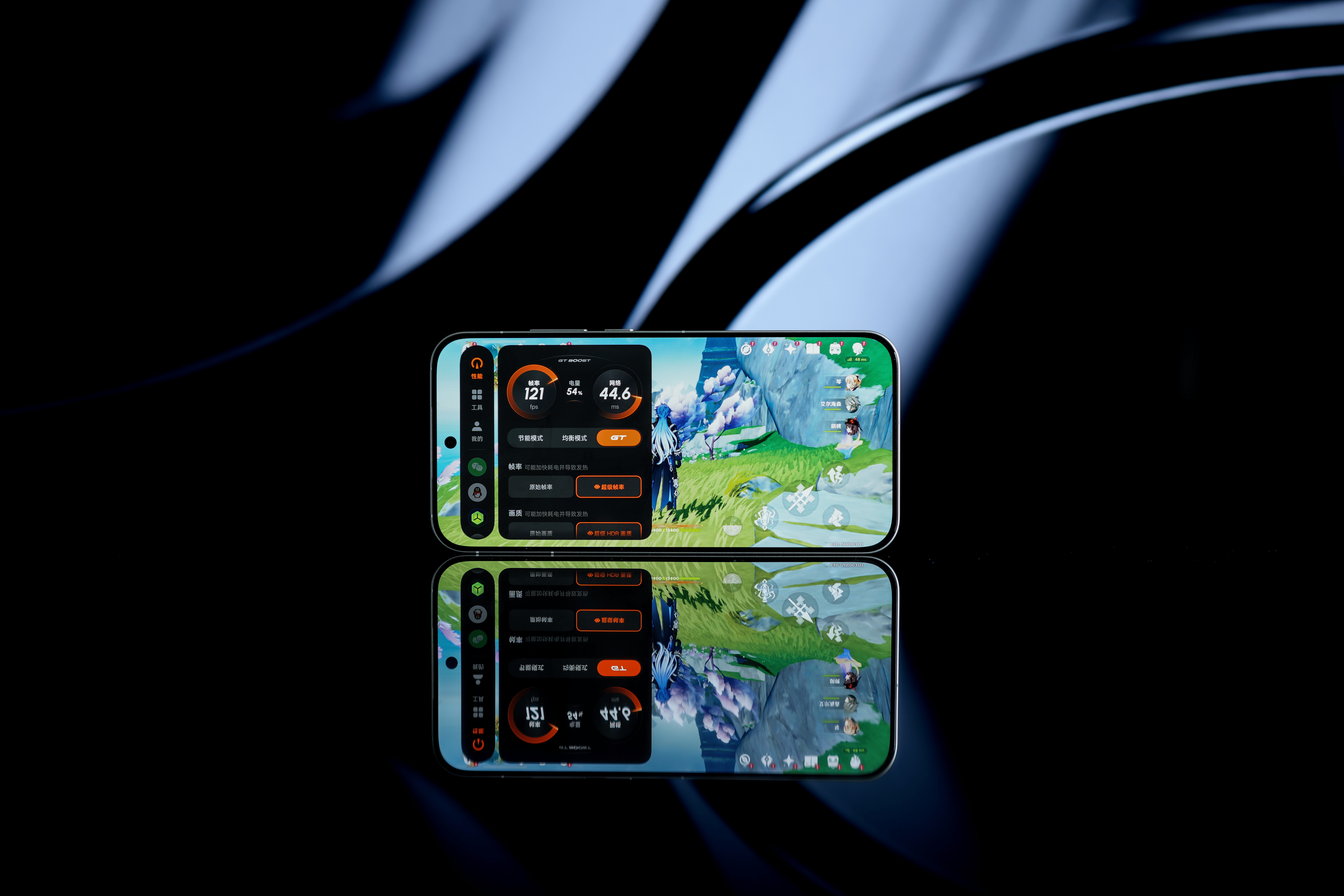 ——骁龙8E5+独显芯片R1,支持2K+120Hz/144Hz超分超帧,实测《原神》全高画质,裸机跑超帧模式,30分钟平均帧数118.9FPS,平均功耗5.5W,这代超帧延迟也低了不少;《和平精英》高分超分模式,一局平均帧数142.7FPS,平均功耗5.6W,这代性能释放足够激进,超高帧游戏体验也来到了第一梯队。