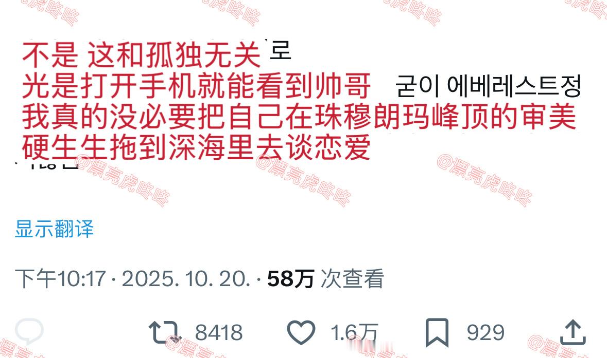 【twi】我态度:“光是打开手机就能看到帅哥,我真的没必要把自己在珠穆朗玛峰顶的