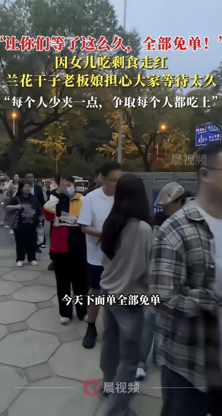 这家“兰花干子”老板娘太暖心了!因为生意太火,顾客排队太久,她直接宣布:“今天下面单全部免单!” 原来之前她发现女儿吃客人剩食的视频走红后,店里生意爆满。她担心大家等太久,还提醒顾客“少夹一点,让每个人都能吃上”。 这样实诚的老板真是难得!既心疼顾客等待,又珍惜食物不浪费。为这份真诚点赞,这样的生意想不火都难!