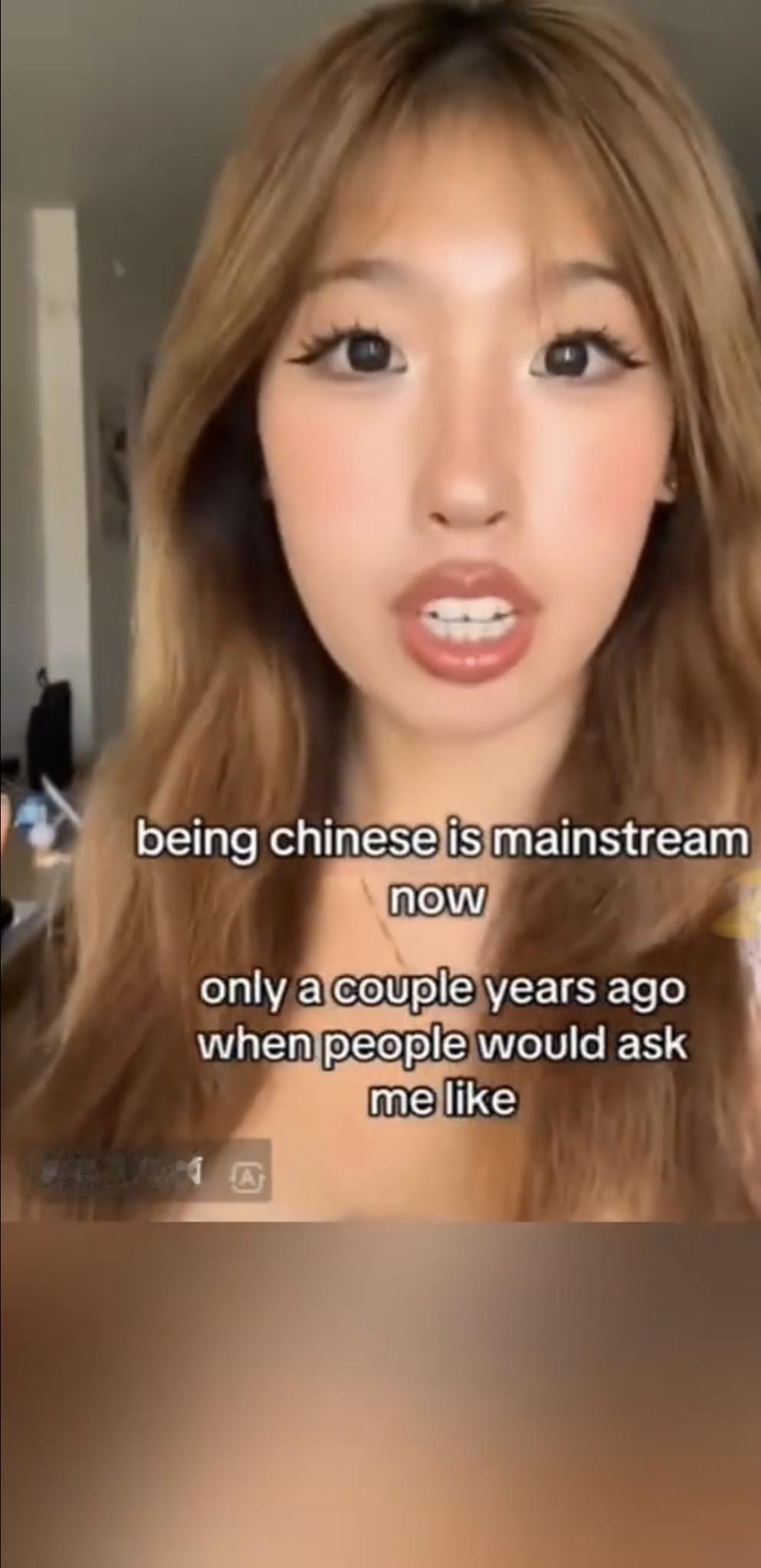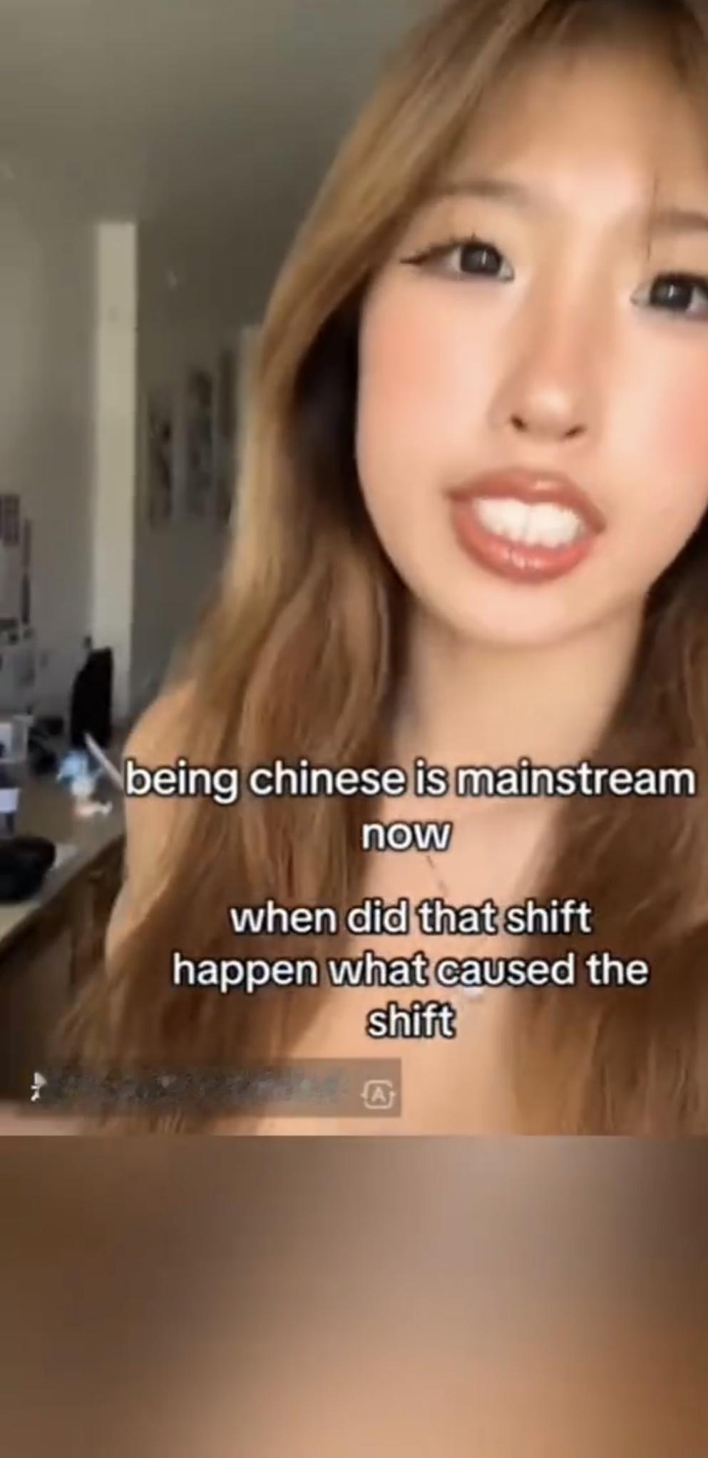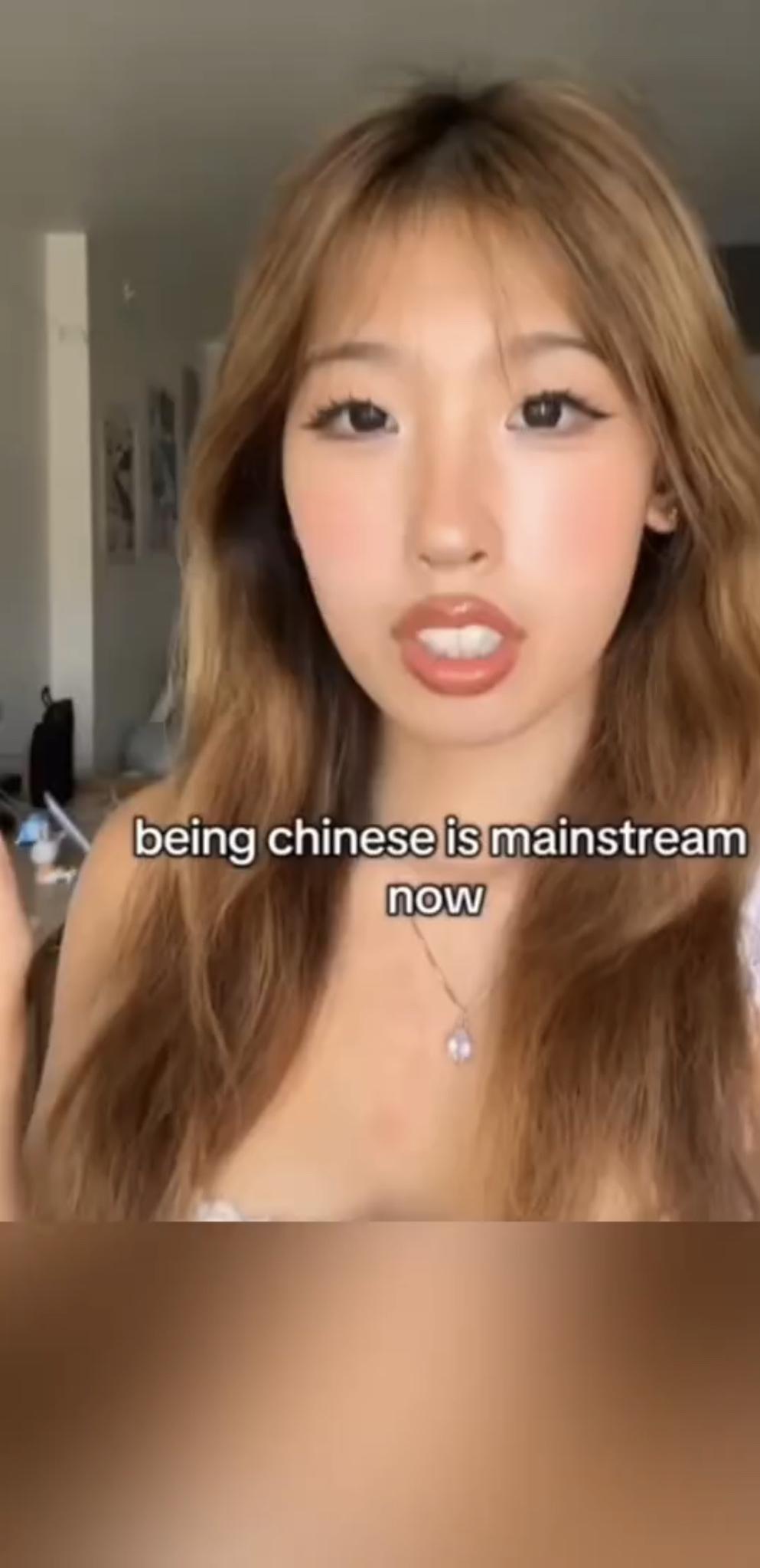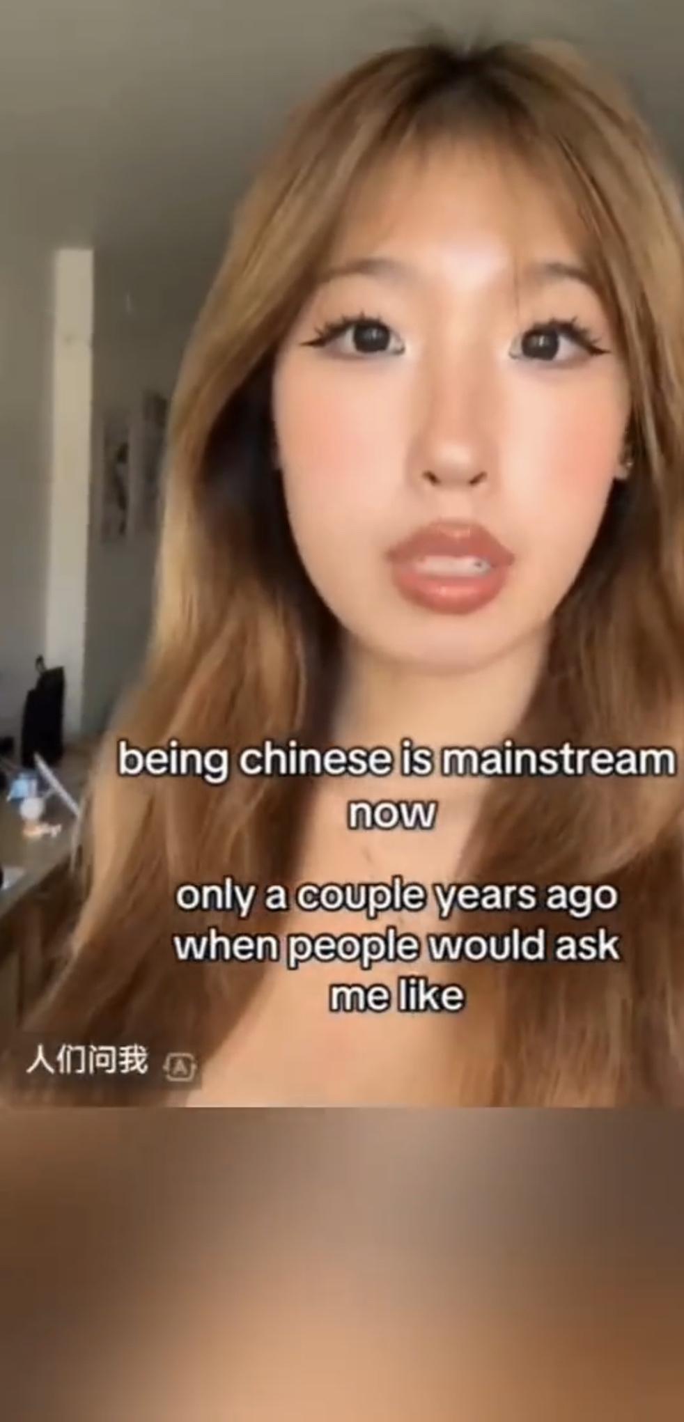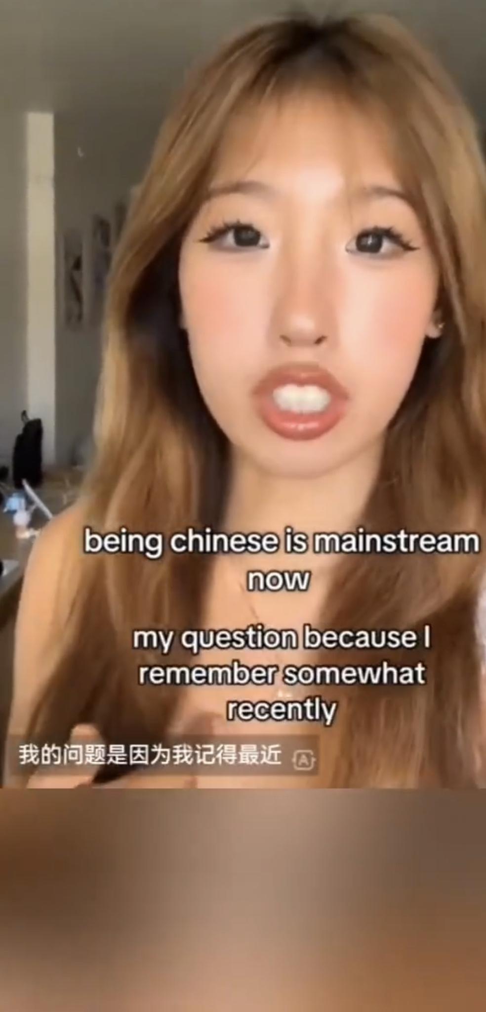 美国华裔女孩上镜的妆容,她有点疑惑道:“为什么最近华裔在美国突然变得受欢迎了?” 她的妆容打扮得跟中国女孩完全不一样,也不太符合中国人的审美,当然,她的妆容绝对是欧美人认可的古板印象。 只见她在镜头前表示:“中国人是什么时候开始受欢迎的?我的问题是因为我记得最近、就在几年前,人们问我,你是来自哪里的亚洲人,我就像哦,说我是中国人,然后他们脸上布满了失望的表情,因为我不是日本人或者韩国人,但是人们现在非常冷静,他们遇到我,看我现在就像中国人,所以他们会说中国实际上大部分时间都很酷,有些说这话的人仍然是种族主义者,是什么导致了这种转变?”