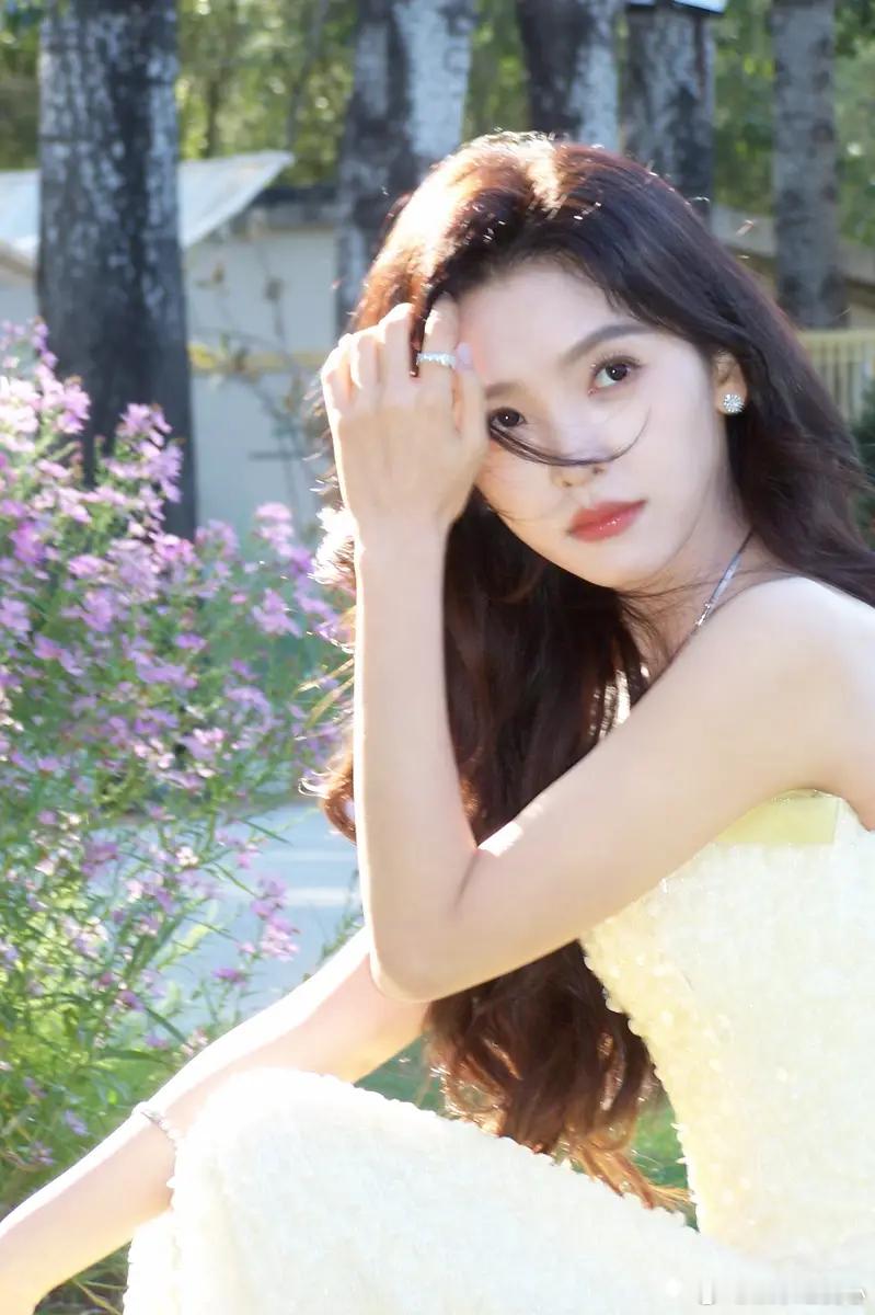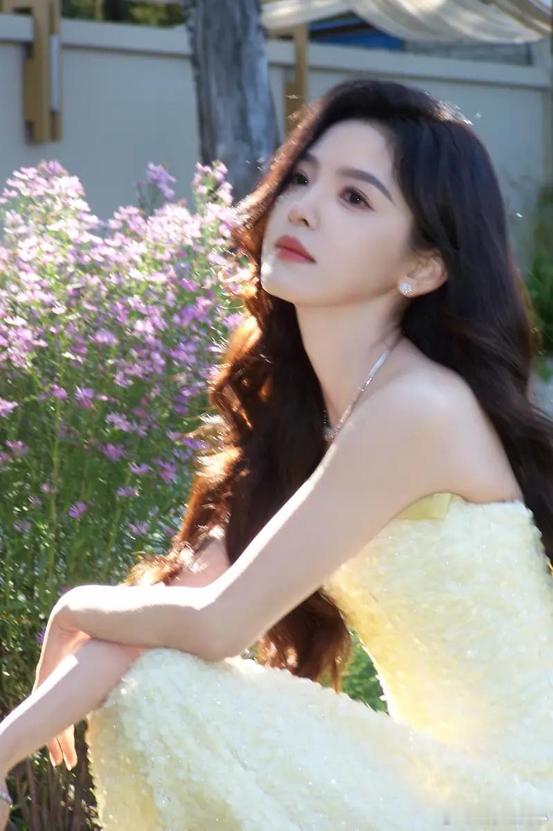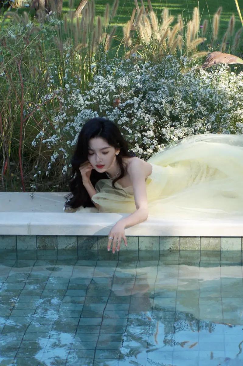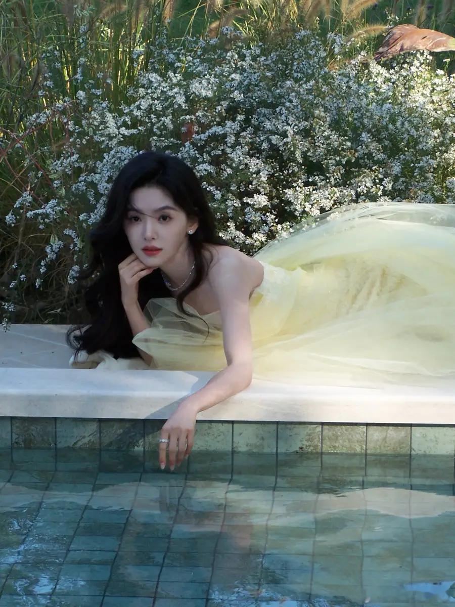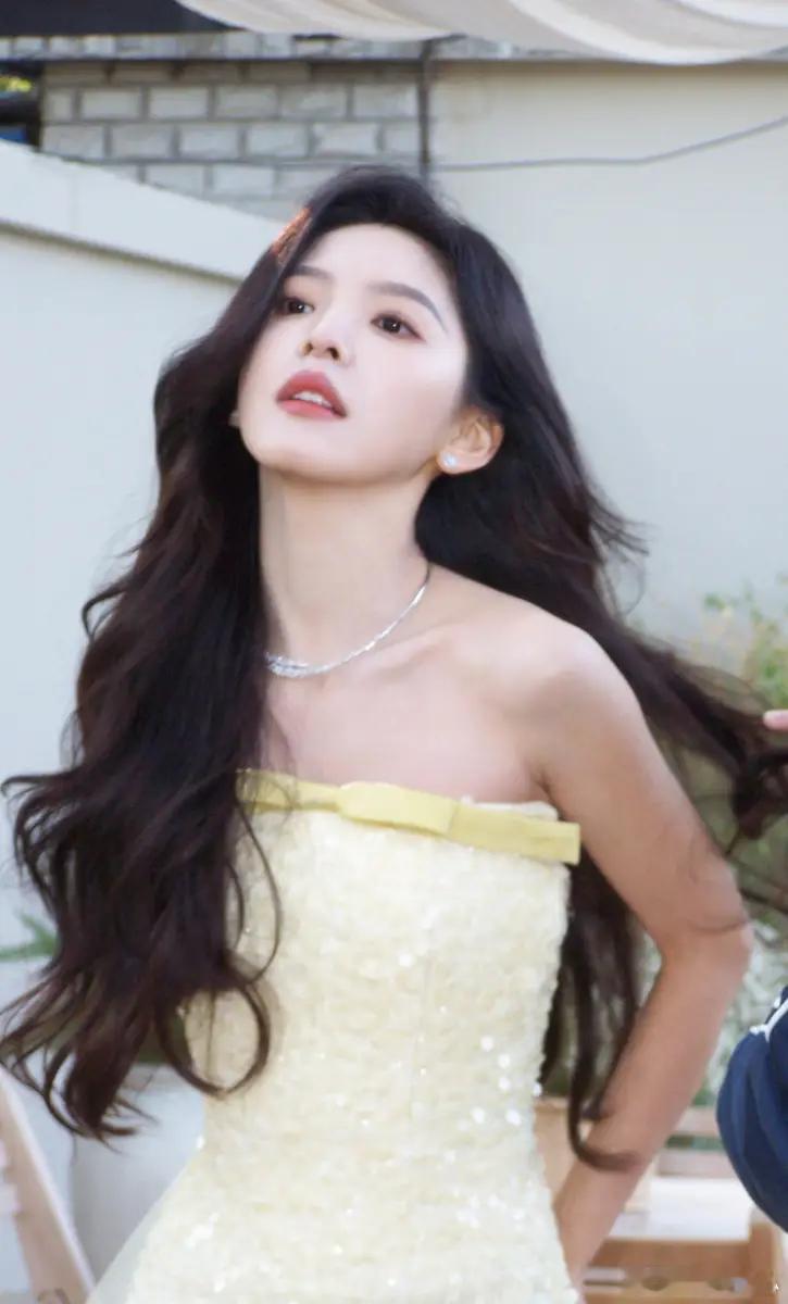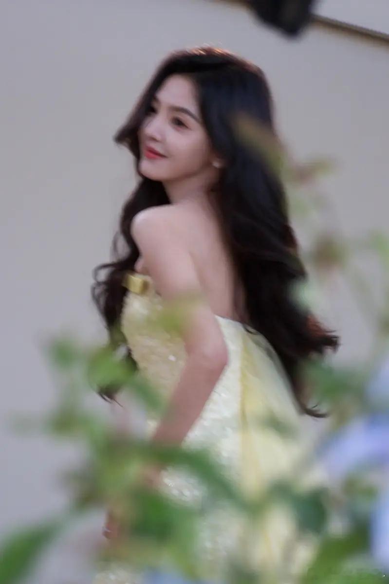 章若楠穿浅黄抹胸裙明媚清甜 回眸浅笑宛如童话里的公主