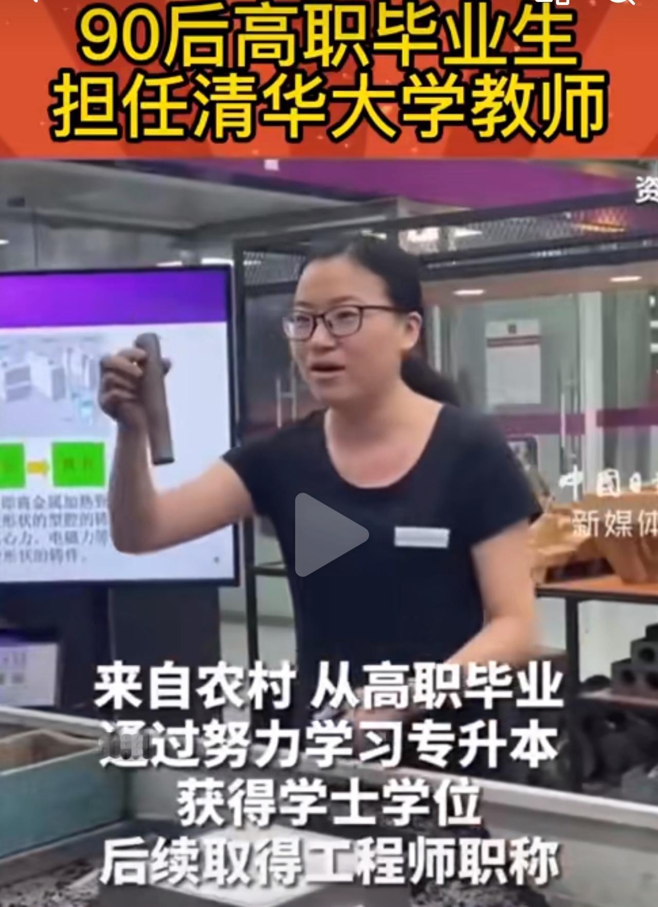 高职毕业的90后姑娘,居然站上清华讲台了! 谁说高职生就只能进工厂干活?陕西姑娘邢小颖偏不认这个理,愣是用真本事把这些偏见全打碎了——19岁从职院毕业,如今反倒在清华园里,教学生摆弄铸造、搞3D打印,学生们都偷偷喊她“宝藏老师”呢! 2014年刚去清华那会儿,她没少受白眼。有人背后嚼舌根:“高职生也能教清华?”她躲在车间里偷偷抹完眼泪,转头就对着机器练,一遍不行就十遍,直到每个操作都熟得闭着眼都不会错。后来教铸造课,她怕学生听着听着就懵了,干脆想了个招——把抛砂的劲儿说成“打篮球扣篮”,撒分型砂比作“烤串儿撒孜然”,就连让人头大的3D打印技术,都被她讲得跟拆快递似的,一听就明白! 2023年她那教学视频一火,播放量直接飙到上亿,大伙这才知道:原来职教出来的老师,能把实操课讲得这么带劲!这九年她也没闲着,专升本拿到了学位,考下了教师资格证,还评上了工程师,连着8年拿教学奖。当初那些嚼舌根的质疑声,早变成实打实的佩服了——谁还敢说高职生不行啊! 现在清华训练中心里,像她这样的职院毕业生还有13个。说真的,不是只有名牌大学文凭才叫厉害,能把技术讲透、让学生真学到本事,这份能耐才更金贵。就像她自己说的:“职校不是退路,是另一条赛道。” 真希望更多人能看见,靠手艺吃饭、凭实力发光,这样的人生照样亮眼!90后女生高职毕业任教清华 高职 清华