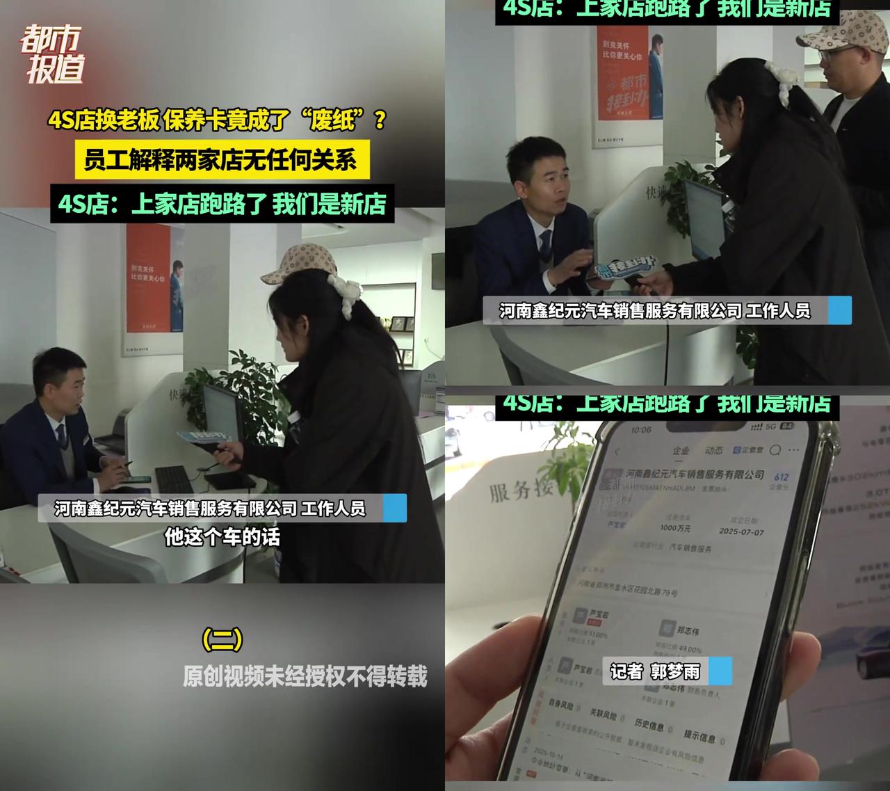 办了终身汽车保养卡的车主,突然懵了, 常去的“新纪元”4S店,居然变成“鑫纪元”! 就改个谐音字,之前花大价钱办的“终身保养卡”,直接成废纸? 找工作人员要说法,人家说:“这卡是之前新纪元的,我们是新店,没关系。” 可大家都看明白了: 新纪元变鑫纪元,连名字都懒得换个新鲜的,这不就是金蝉脱壳? 有人说,原本就是同一个老板,换个马甲就甩锅; 还有人吐槽,这是用谐音羞辱客户, 办卡时喊着“比你更关心你”,翻脸时用换字游戏把人当傻子! 最气的不是卡没用了,是商家把消费者的信任,当屁放! 你们遇到过这种改个名字就不认账的商家吗? 大家怎么看?