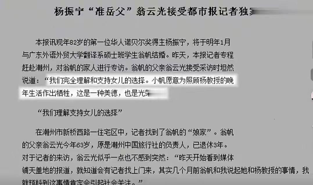 翁帆父亲当年曾自曝过对女儿婚姻的看法!杨振宁身上4个优点,无男人能及! 原来翁