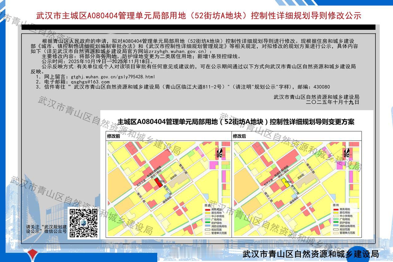 青山52街坊A地块由商备变住宅 10月19日,青山区自然资源和城乡建设局拟对A0