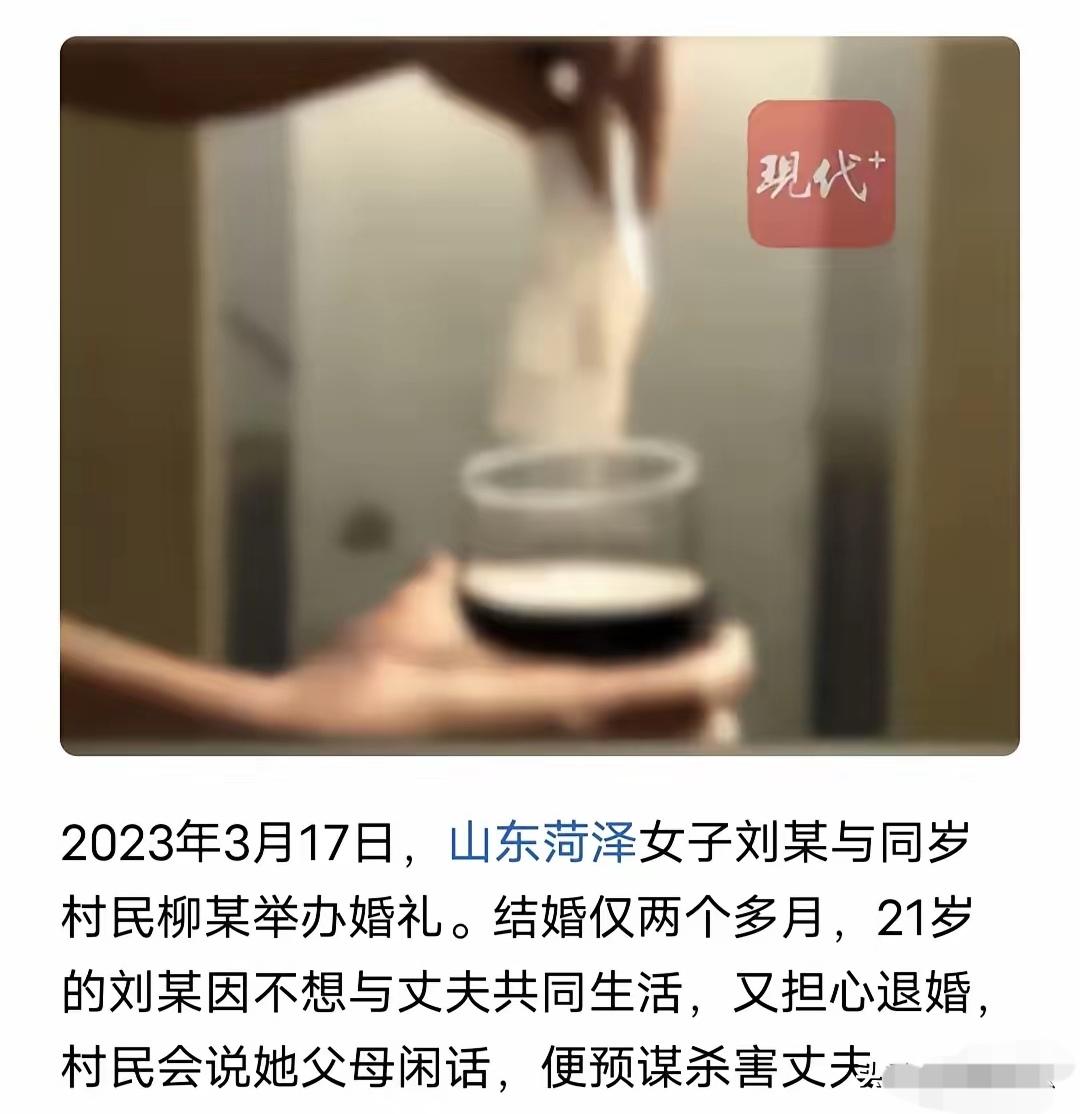 “比潘金莲还狠!”山东菏泽,21岁女子刚新婚2个多月就后悔,但又怕退婚被人说三道四。于是她想出了一条毒计摆脱丈夫。 然而,殊不知,正是这个她认为天衣无缝的好计谋,也把她彻底送进了鬼门关 有句话老话说的不中听,叫:最毒妇人心!但今天这个事儿却是十足的印证了这句话。 2023年3月17日,21岁的女子和未婚夫举办了一场热热闹闹的婚礼。 夫妻二人同岁,相貌家境也是旗鼓相当,怎么看也是一桩完美匹配的婚姻。 然而,让人意外的是,这对小夫妻没有人们想象中的恩爱有加,反而是女子很不喜欢这个新婚老公。 真是让人想不明白,既然没那么喜欢,为什么要结婚在一起呢? 其实,女子也做过努力,她也想和老公培养出一些感情来,然后再慢慢的生活。 然而,让她失望的是,经过两个月的相处,她不但没能爱上老公,反而是越来越讨厌老公,一分钟也不想和他呆在一起。 女子最初也想过离婚,可她又担心,万一自己离婚,家里的父母肯定会被人指指点点说三道四。 她深知,在村里,流言蜚语对人的伤害有多大。 爱又爱不上,离又不敢离! 于是乎,一个可怕的念头窜进了她的大脑,她想“解决”掉自己的老公,让他从这个世界上彻底的消失。 “机会”很快就来了。 同年5月28号,这天,两人约好一同回岳父母家吃饭。 于是,29号女子特意去药店买了一瓶安眠药,以备晚上的时候用。 29日晚上,老公如约去岳父母家吃饭喝酒,然后当晚女子就开车拉着喝多的老公往家走。 中途,女子假意关心老公给他解酒,于是就趁机把提前买好的安眠药给他吃了。出于对妻子的信任,老公并没有丝毫的起疑。 喂完药之后,女子并没有开着车返回家中,反而是将车开到了之前找到的机井旁边。 女子曾哄骗老公要找机井许愿,所以提前找了个机井。 随后,女子又设计哄骗老公下车,然后又各种劝说老公下井帮她捞鱼。 老公喝了酒又加上吃了药,神智有点不清,没有一点判断力,所以迷迷糊糊就听从妻子的下井去了。 没想到的是,下井过程中老公坠入了井中。不过,这也正如女子期待的那样:希望老公坠井淹死。 老公坠入井中,吓得大呼救命,并求妻子快去找人来救自己。 女子听到呼救还真开车走了,不过,她不是去找人就老公,而是等老公咽气。 次日凌晨2点多,女子觉得差不多了,于是她就回来把机井盖给盖上了,然后装作什么都没发生一样,逃离了现场。 最后,男人因缺氧窒息呼吸衰竭而死。而最终女子也因为杀人之罪被判了死刑 这个事件真是让人唏嘘,所以想说的是:这个女人啊,真是一步错步步错,而且错得太离谱。 第一蠢,不喜欢还硬着头皮结婚。 婚姻不是过家家,更不是给别人看的戏。她和老公没感情,却因为各种原因草率走进婚姻,结果才两个月就忍无可忍。这不是自找苦吃吗?! 感情基础都没有,还指望能日久生情,简直是拿自己的人生开玩笑。 第二蠢,因为怕村里人的闲言碎语,就不敢离婚。 在农村,确实有人爱嚼舌根,但日子是自己过的,不是活给别人看的。 离婚虽然会让人议论一阵子,但总比天天煎熬、最后走向极端好得多。她把面子看得比命还重要,结果害了别人,也害了自己。 第三蠢,她竟然以为杀了人能一了百了,完全没想过杀人要偿命。 这是最荒唐、最无知的一点。现在是法治社会,不管你有什么理由,杀人就是重罪。 她以为做得天衣无缝,殊不知天网恢恢,最后不仅没能摆脱婚姻,还把自己送上了黄泉路。 说到底,这就是缺乏理智、缺乏勇气,又被愚蠢的念头牵着走的结果。人生哪有过不去的坎,可她偏偏选了最绝的一条路。 你们觉得呢?