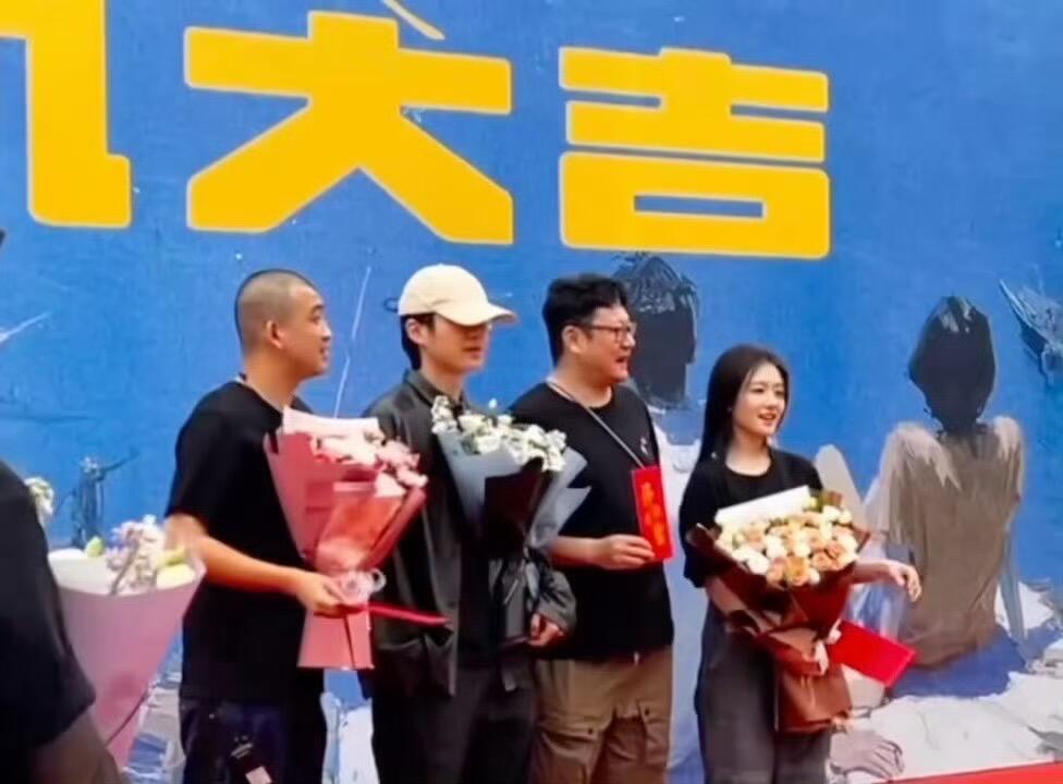 成毅两京十五日开机路透,成毅和爱奇艺龚总张黎导演还有几位重要领导一起给一号机揭红