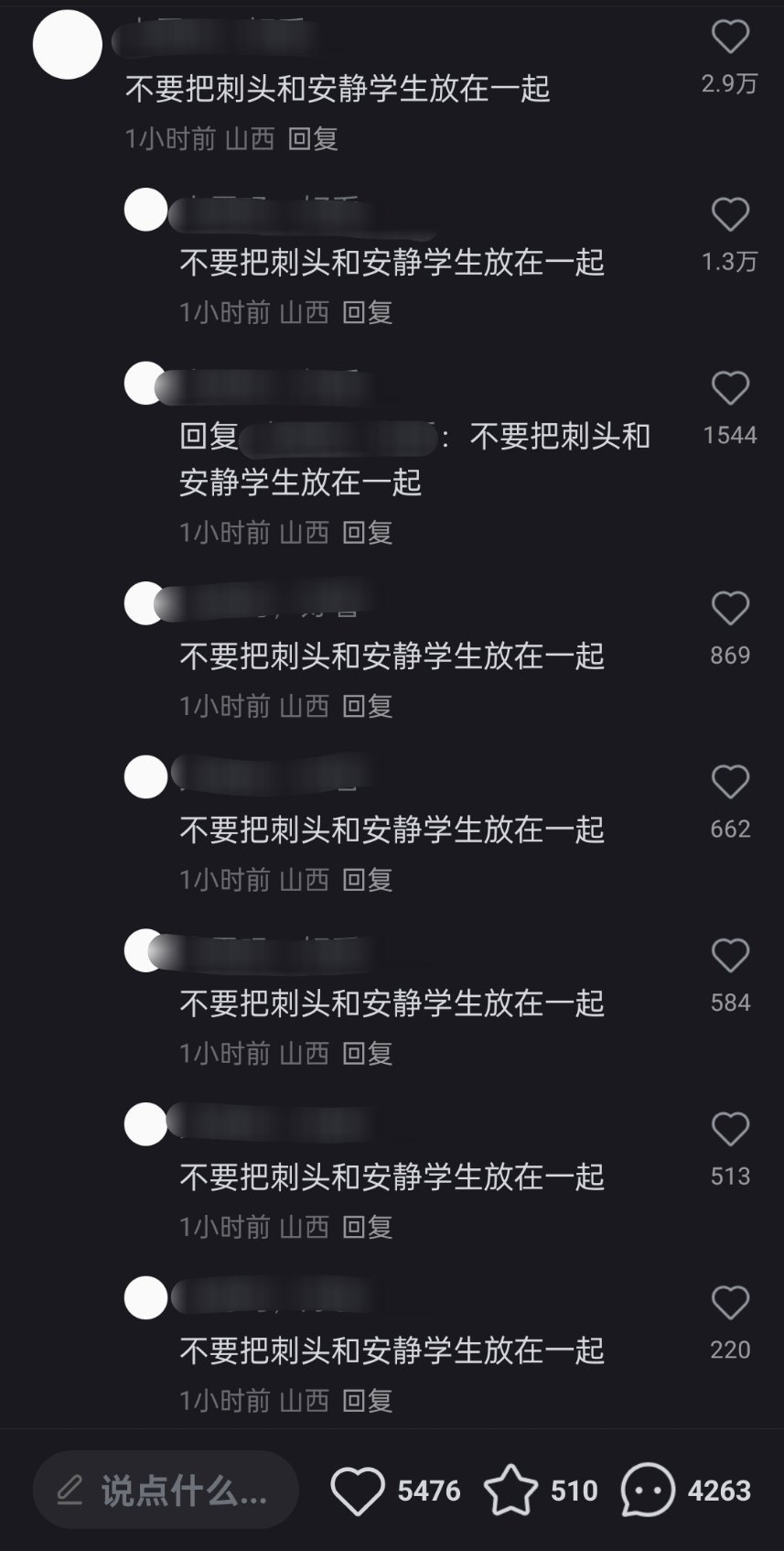 学霸压制刺头,聊天女生跟刺头是情侣,安静男女有可能才是社会顶梁柱,把他们安排远一点,霸凌现象就发生在他们身上