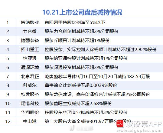 【10月21日增减持汇总】a股