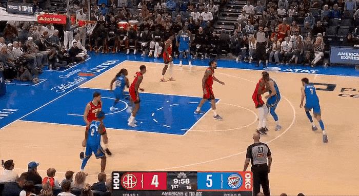 切特霍姆格伦不给杜兰特面子啊! NBA常规赛,在雷霆对阵火箭的第一节比赛,切特中