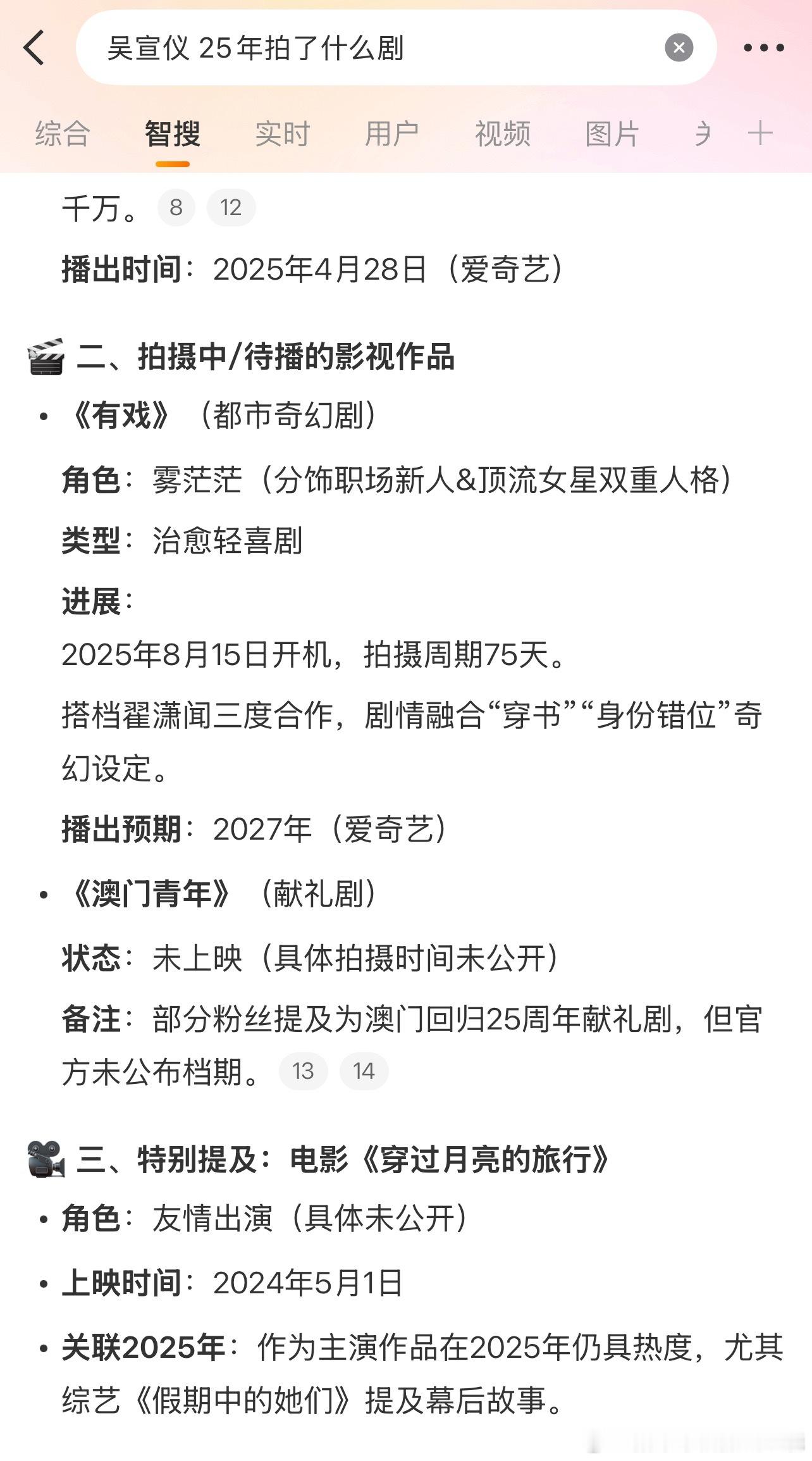 搜了一下,吴宣仪25年不就拍了一部8月开机的剧吗?怎么表现得好累的样子[笑cry]