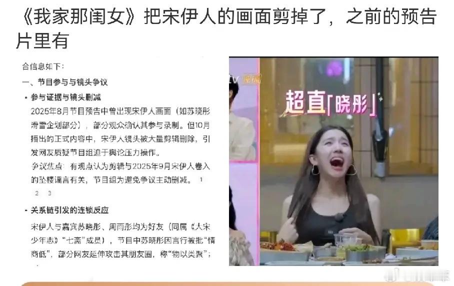 网传《我家那闺女》把她的镜头剪掉了,这种事情一旦开头,之后想翻身很难了。已经拍好的剪掉,这是塌方艺人的待遇。