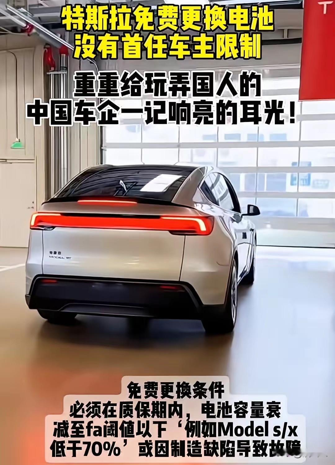 马斯克又被粉了一波! 特斯拉又走在了行业前面, 首次官宣可以为特斯拉车主免费更换电池! 如果这事是真的的话,那就打了很多国产新能源的脸了!众所周知,很多新能源都是对首任车主有相关权益政策,一旦你卖了车或者买的是二手车,有些权益你根本享受不到,特斯拉这样做,无疑是开了一个好头,这也会成为特斯拉的一大卖点![赞][赞][赞]