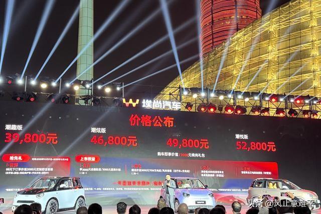 2025年10月21日晚,埃尚A100C正式上市 。 埃尚是柳州五菱与河南森源合作的品牌,A100C是该品牌的首款车型,定位纯电动A00级车 。新车推出4款车型,指导价区间为3.98-5.28万元 。 埃尚A100C采用3门4座布局,车身尺寸为3285×1708×1550mm,轴距为1980mm 。车辆搭载单电机,最大功率35千瓦,最大扭矩83牛·米,全系标配17.65度磷酸铁锂电池,CLTC纯电续航可达220公里,快充时间30分钟,慢充时间小于5小时 。埃安品牌