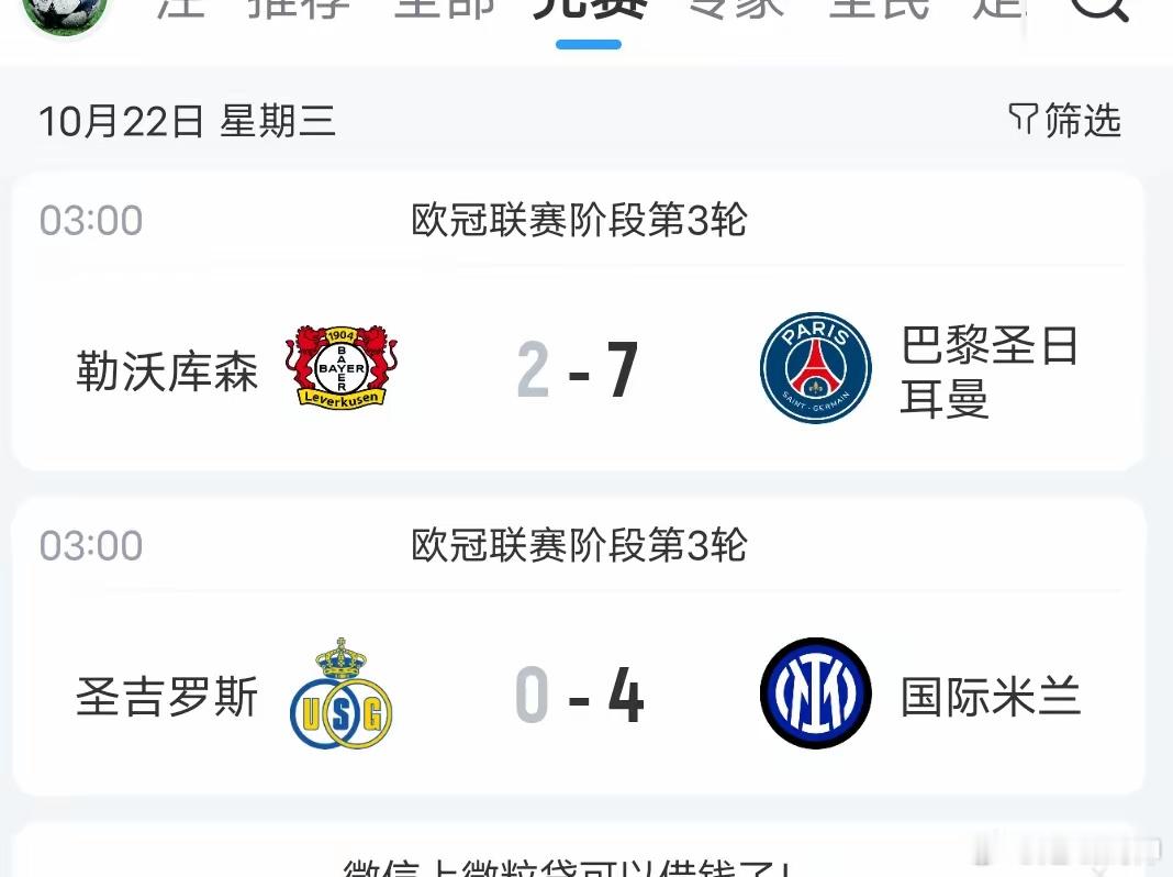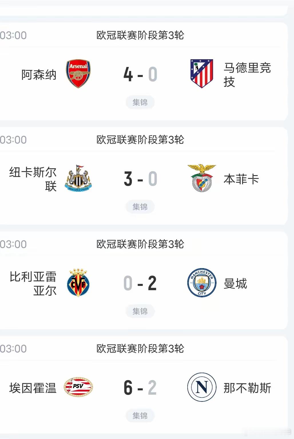 一觉醒来,欧冠竟出现多场大比分!国米、纽卡、曼城取胜在情理之中,但欧冠劲旅马竞居然0:4惨败,本赛季的马竞已破落至此?德甲的勒沃库森2:7被大巴黎血洗,看来“龙哥”走后被抽了魂!意甲强队那不勒斯在“孔二楞子”带领下继续欧冠笑话,理所当然的2:6脆败于荷甲埃因霍温!