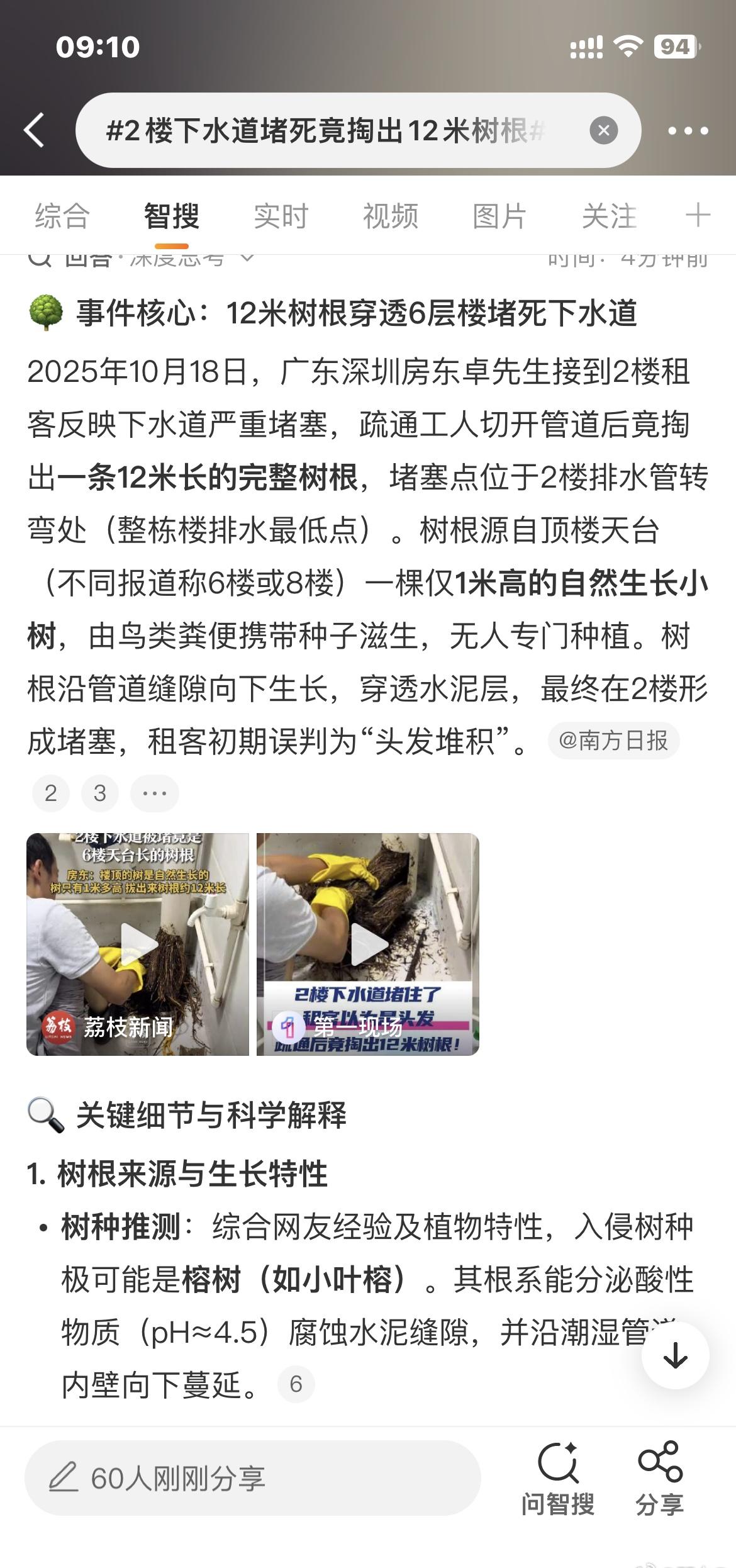 2楼下水道堵死竟掏出12米树根这种已经不是个例了,而且榕树根机具破坏力!2楼下水