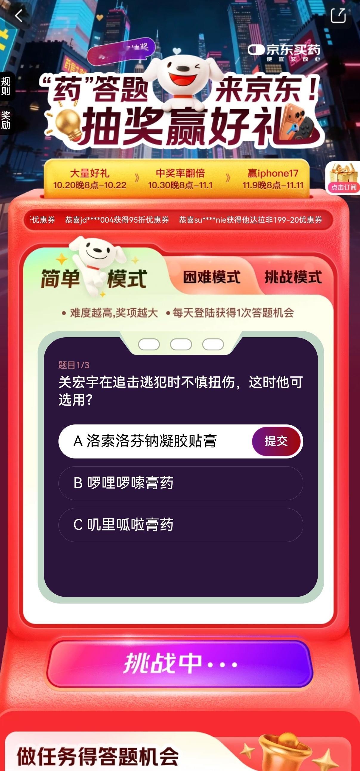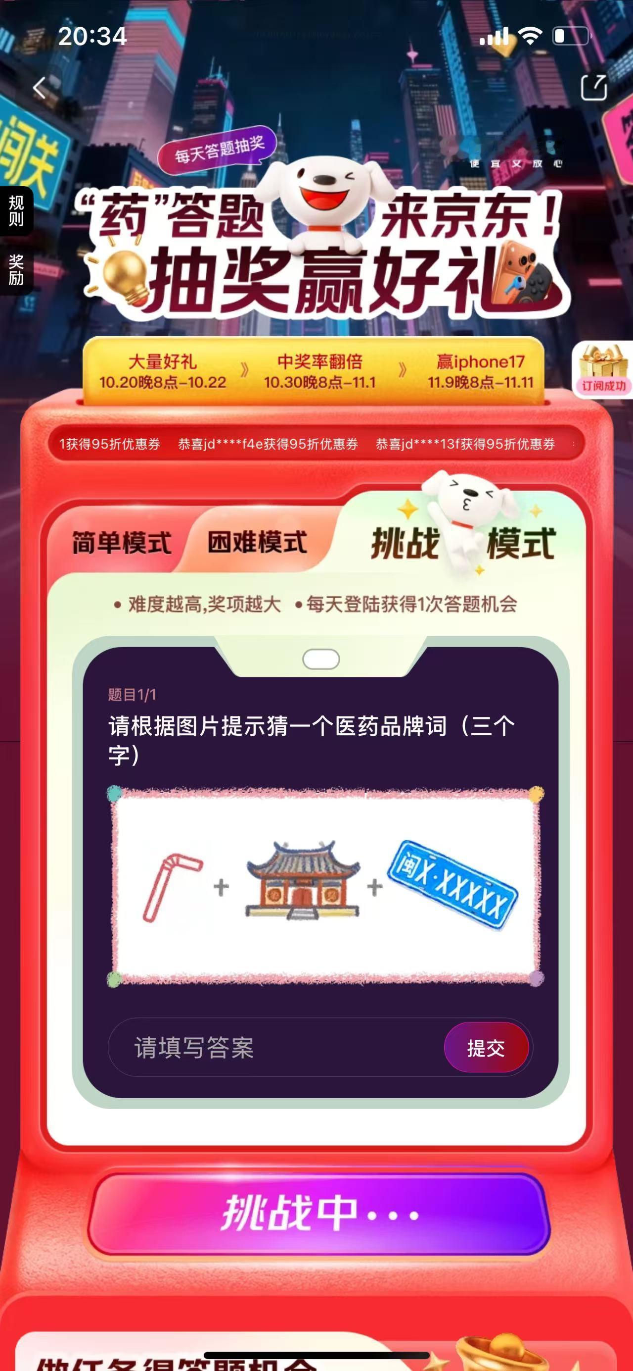 这次京东的答题活动真的让我玩上头了!不仅有用药常识题,更有意思的是看图猜医药品牌环节!这简直是考验联想力和瞬间记忆力的绝佳设计,那种“肌肉记忆”被唤醒的感觉太奇妙了!我刚才就差点在一个熟悉的品牌上翻了车,看来知识库真得更新了!