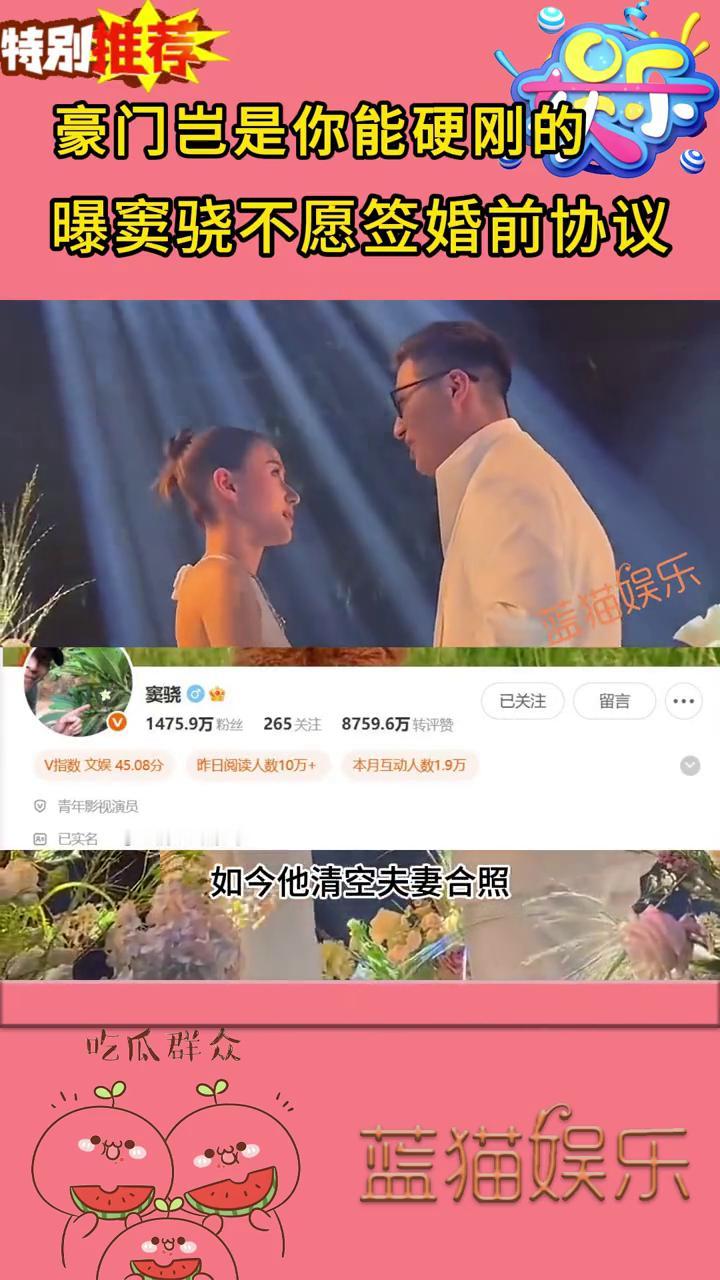 豪门岂是你能硬刚的?曝窦骁不愿签婚前协议。 蓝猫娱乐。 结婚不是开公司,窦骁这句