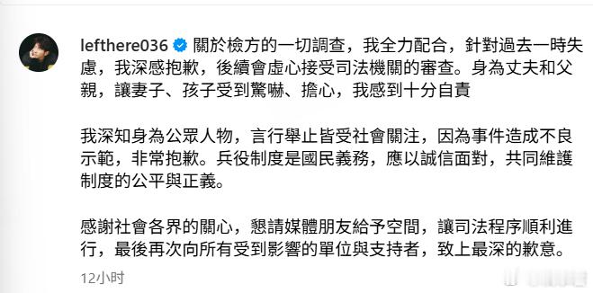 修杰楷发文道歉啊这众说纷纭啊[晕]有说花钱操作不当导致服了兵役,有说因为配偶怀孕