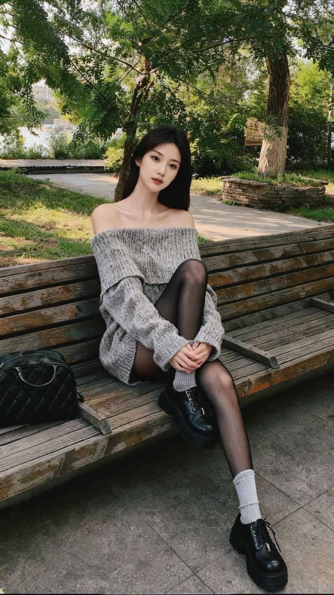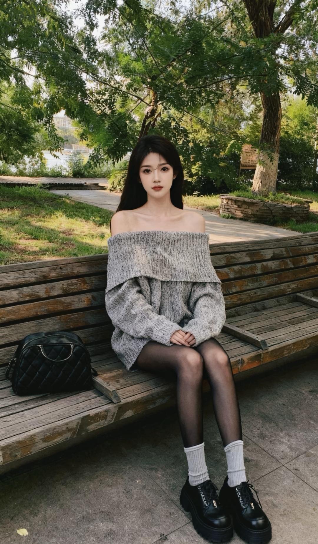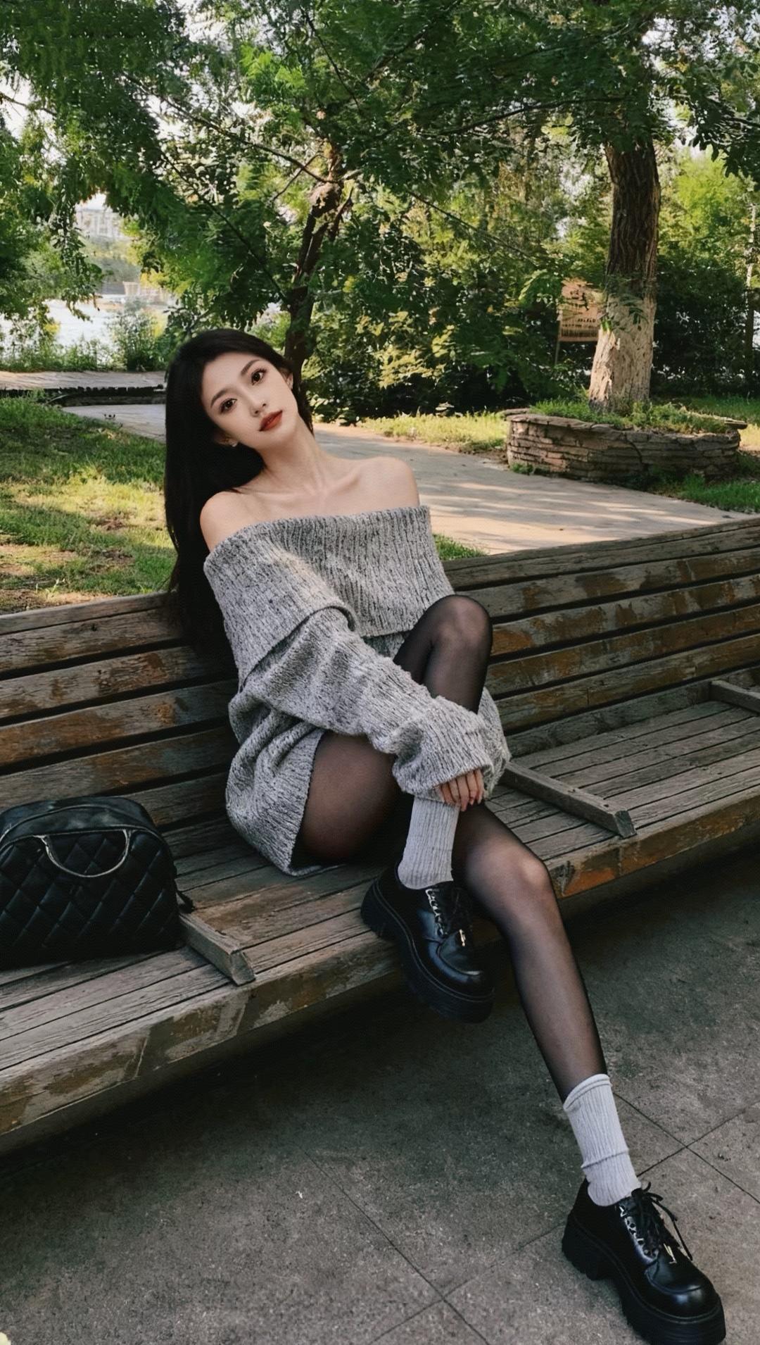 灰色毛衣+黑色靴子,秋日清新又时髦的穿搭
