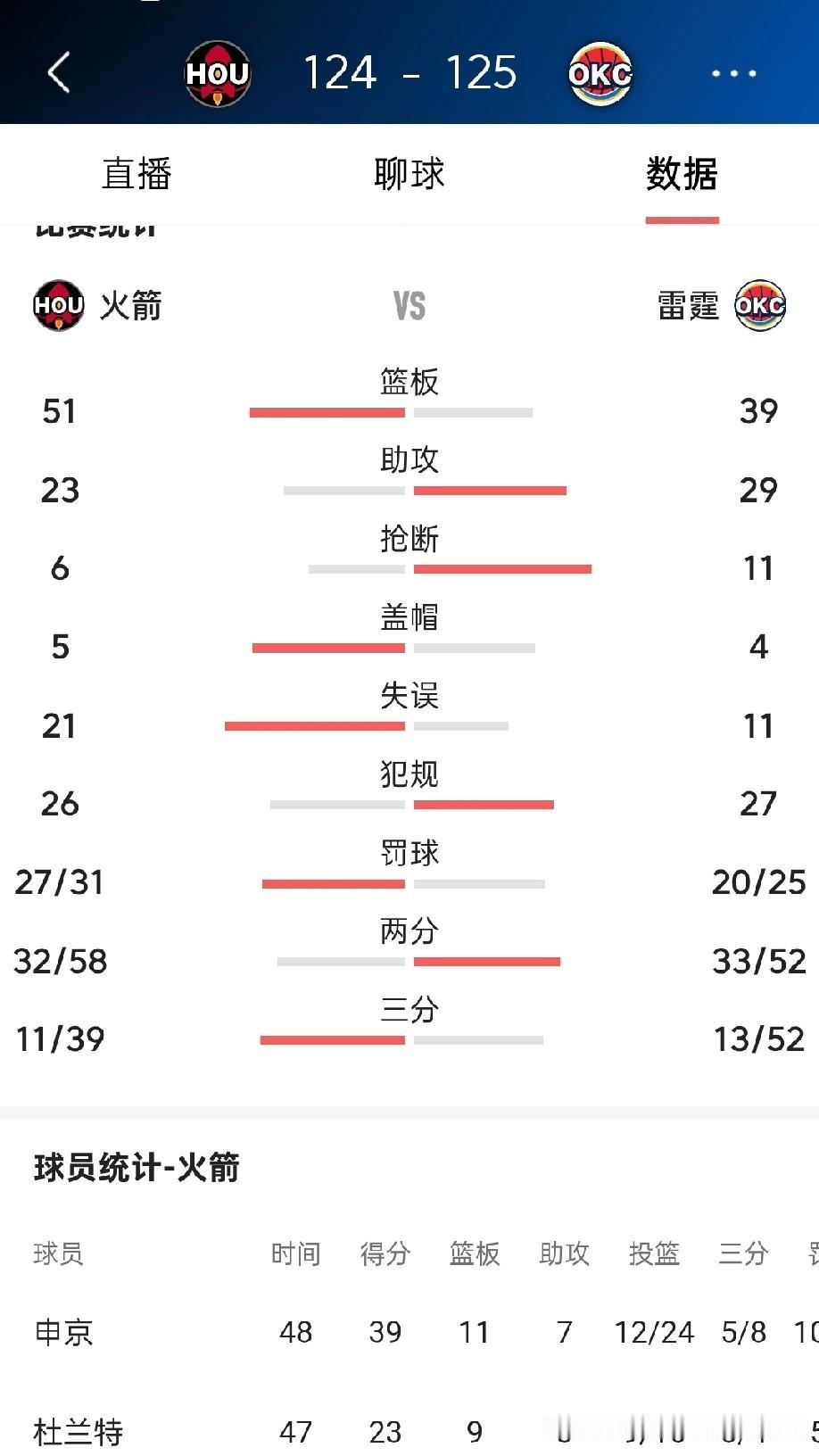火箭双加时124-125输掉与雷霆的比赛,输球最大的原因就是三分命中率差以及失误太多。申京本赛季会继续进化呀,杜兰特这次终于抱上申京这个大腿了。亚历山大是真强!