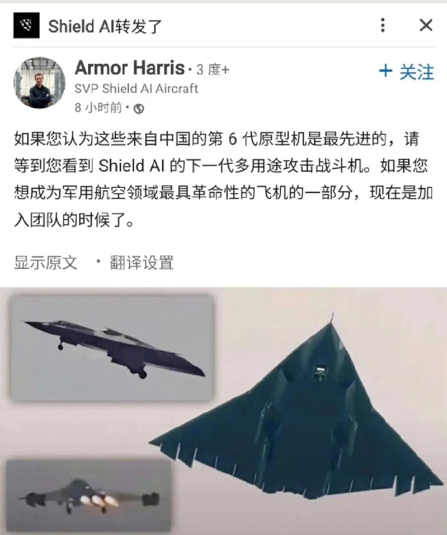 这脑回路,简直不要太完美:龙哥六代机原型机不算啥,Shield AI的才是王者? 22日,这个AI视频在外网很火,让西方“军盲”很嗨…… 他们不仅认为这比歼36、歼50这样的六代机更酷,还认为这才是未来军用航空领域的王者。 本来想反驳一下,想想看,还是算了,从PPT到能动起来,本就不容易,干嘛打击人积极性呢? 然后留下一句,演吧,继续你们的表演,溜了[得意]