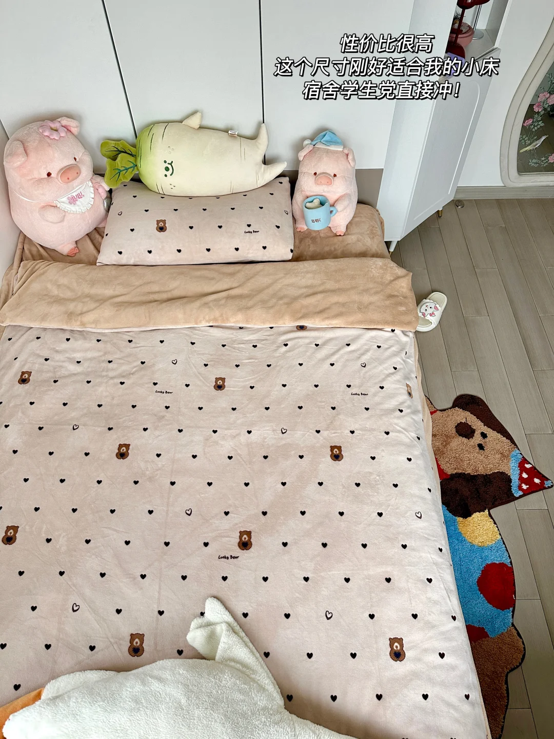 因为我床的尺寸比较小,只有1.35*2m,所以选择了柳伊的牛奶绒三件套,它们家是专做学生🧑🎓宿舍床品19年的老国货啦,正好也有我想要的尺寸,就买了一套试试!拿到手真的非常重,很厚实的一套,摸起来也超软!这是我已经放进洗衣机洗过的样子了,不掉毛!谁懂冬季鼻炎患者的痛苦😷,掉毛的珊瑚绒真的不想再碰了