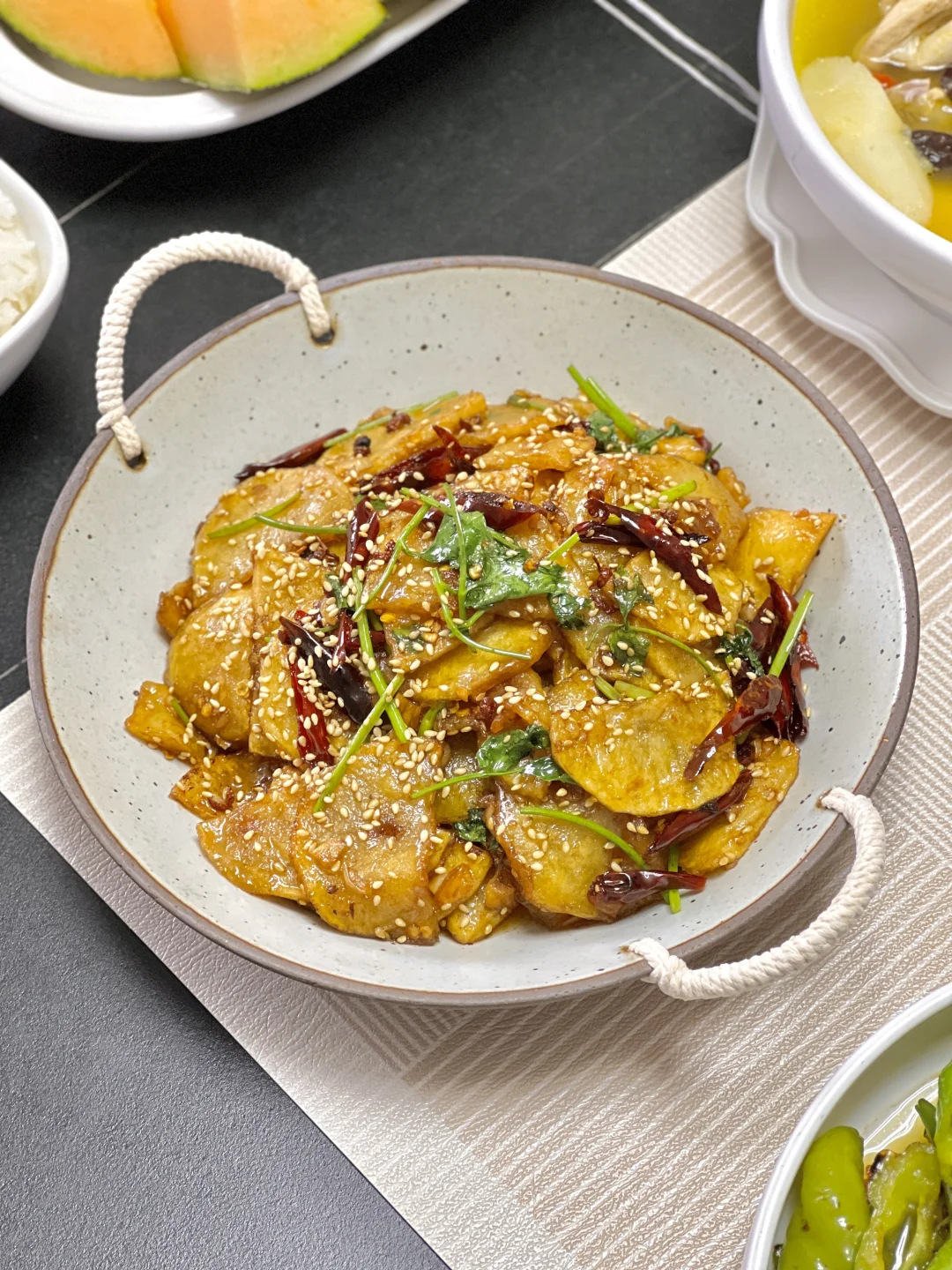 今天做了超下饭的辣椒炒肉!喜欢这口的小伙伴可以试试这个做法,记得加豆豉哦,是这道菜的灵魂[大笑R]还有我喜欢的风味土豆片,虽然要过油炸有些麻烦,但入口的那一刻就觉得值了[偷笑R]酸酸辣辣的,好香! 【辣椒炒肉】 【风味土豆片】 【板栗鸡汤】 【彩椒炒口蘑】