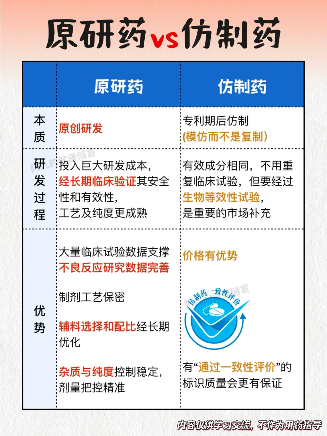 ✅ 原研药:研发投入大、工艺成熟、纯度控制严、临床数据全