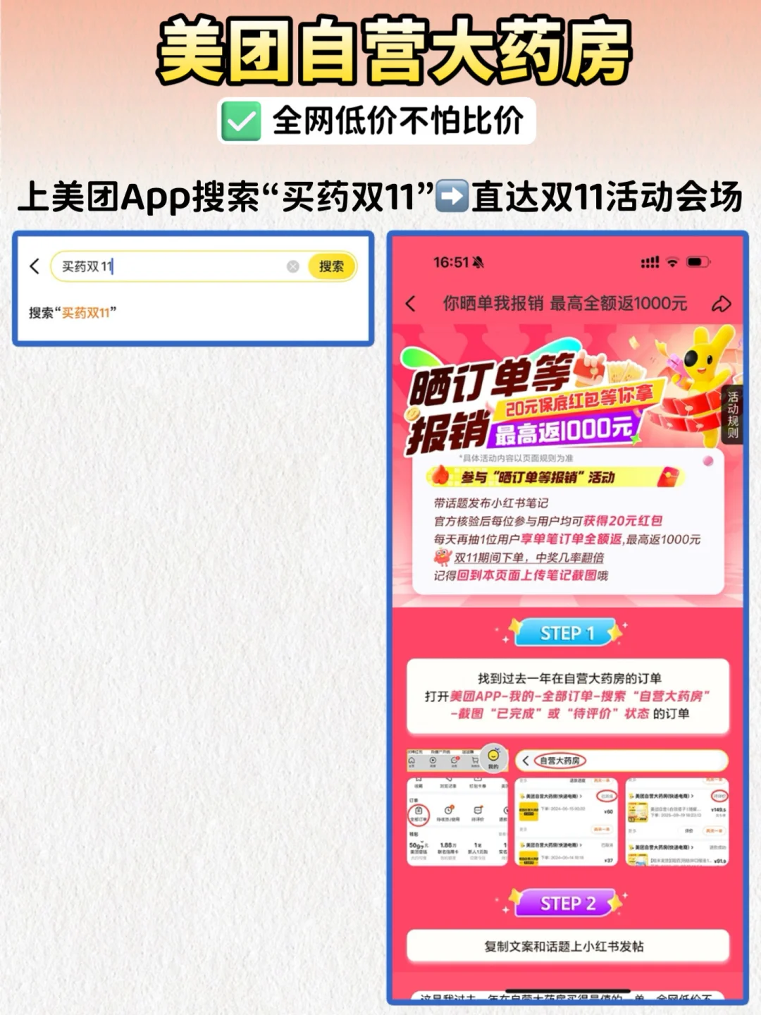 [开箱R]只要曾经一年在美团自营大药房下过单,还可以参与双11活动,不仅能得20元买药无门槛红包,还有机会抽到想买的原研药免单(最高免1000元)!先到先得,赶紧上美团App搜“买药双11”看看吧~