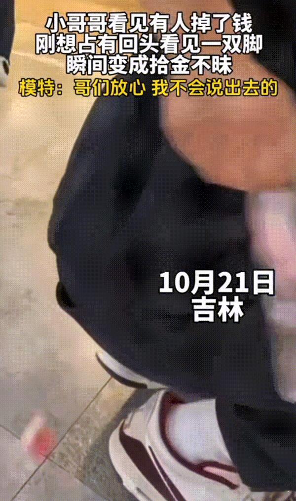 笑不活了!吉林,在商场里小伙子看见有人掉钱后,立马第一时间跑了过去,刚想占有回头却看到了一只脚,然后吓的他瞬间直接还给了失主。这也算是做好事不留名,变成拾金不昧了,当他打算大大方方离开的时候扭头却发现那只脚是一个假模特的。网友:哥们放心,它是不会说出去的! 男子逛商场无意间发现前边有个人掏东西的时候把后兜的钱给掏掉了,他瞬间多了心眼想着上前把钱用脚先踩住。然后失主走后据为所有,可是不是谁的东西就不是谁的。 当他刚蹲下时扭头却看到一只大脚板,这时他心虚了,想着不要为了这一百块钱引来不毕业的麻烦呀!于是装作好心直接捡起来那钱,递给了失主。 失主一个劲感谢呀,他笑嘻嘻的回应 没事这就是我该做的,从小妈妈就叫我们应该昨个诚实且拾金不昧的人。然后大大方方的起身,想着挺胸抬走走到漏出那只脚坏他好事的人跟前,炫耀一把。 让他认为是错怪他了,并且让人家对他刮目相看。万万没想到下一秒不仅吓了他一大跳,还让他震惊了。真是慌则乱,这就是一个店铺的模特而已,让他认我成了是真人罢了! 这也太好玩太搞笑了,真是惊喜意外又刺激呀!我想当他看着模特不可思议的时候,模特肯定想给他说:没事兄弟就算你要了那钱,我肯定这辈子也不会说出去的。 这你做了好事看来我也是不会告诉别人的,此刻男子心里估计也慌了,心想草率了。哈哈哈,生活中总是遇到一些奇奇怪怪的人和事,谁能懂男子抬头看到模特的那一刻时该有多后悔。 对于这件事情,大家有什么看法? 信息来源:直播聊城