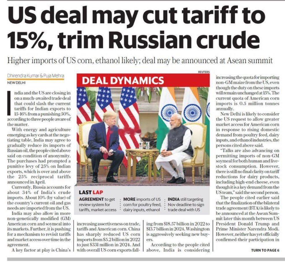 10月22日印度《铸币报》(Mint)报道,印度和美国接近达成贸易协议。