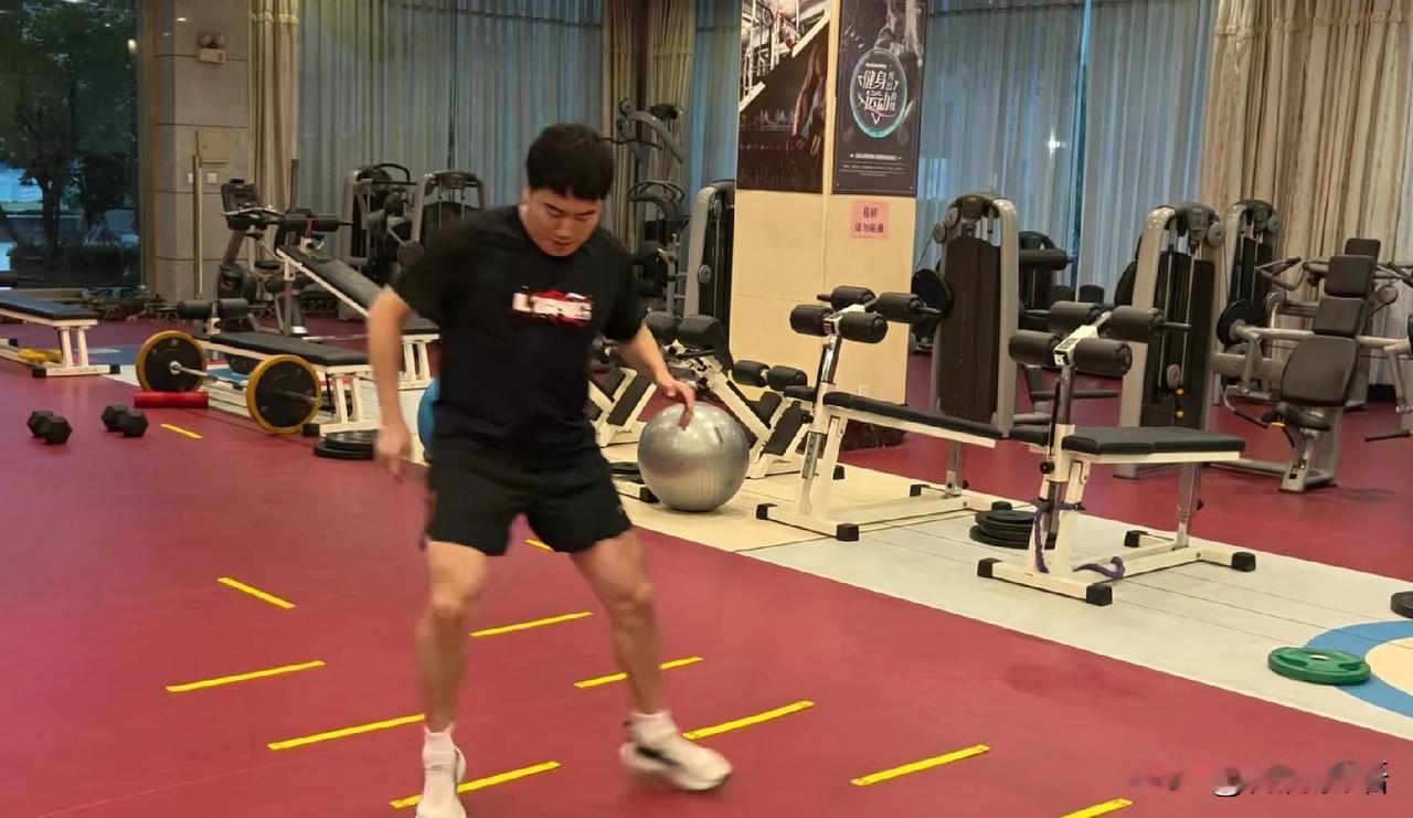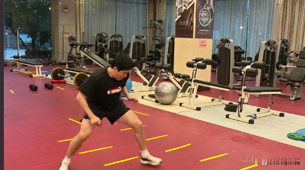梁靖崑已经在正定了开始训练了。 刚刚看到梁靖崑在练体能,就是沿着这个线来回的跑,