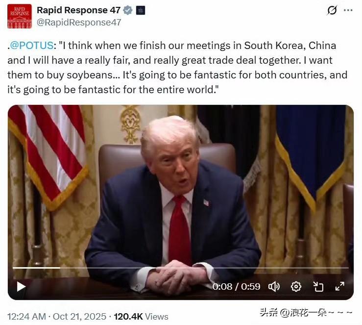 就在刚刚! 特朗普又整活了![捂脸]他说:“我认为当我们在韩国的会晤结束后,中国和我将共同达成一项真正公平、真正伟大的贸易协议。我想让他们购买大豆……这对两国都将是极好的,对整个世界也将是极好的。” 看看吧,大豆在特朗普心里面是有多么的重要,因为这关系到他明年的中期选举票仓,也关系到周末有多少人走上街头抗议游行示威,更关系到美联邦政府的脸面,连一个大豆问题都解决不了,还能解决什么呢?人家巴西方面都说了,今年的大豆已经又种上了。这么一比较,差距可就大了,一个还在田里面没收割,一个新的大豆又快发芽了。 你们说,这大豆的问题还有解吗?