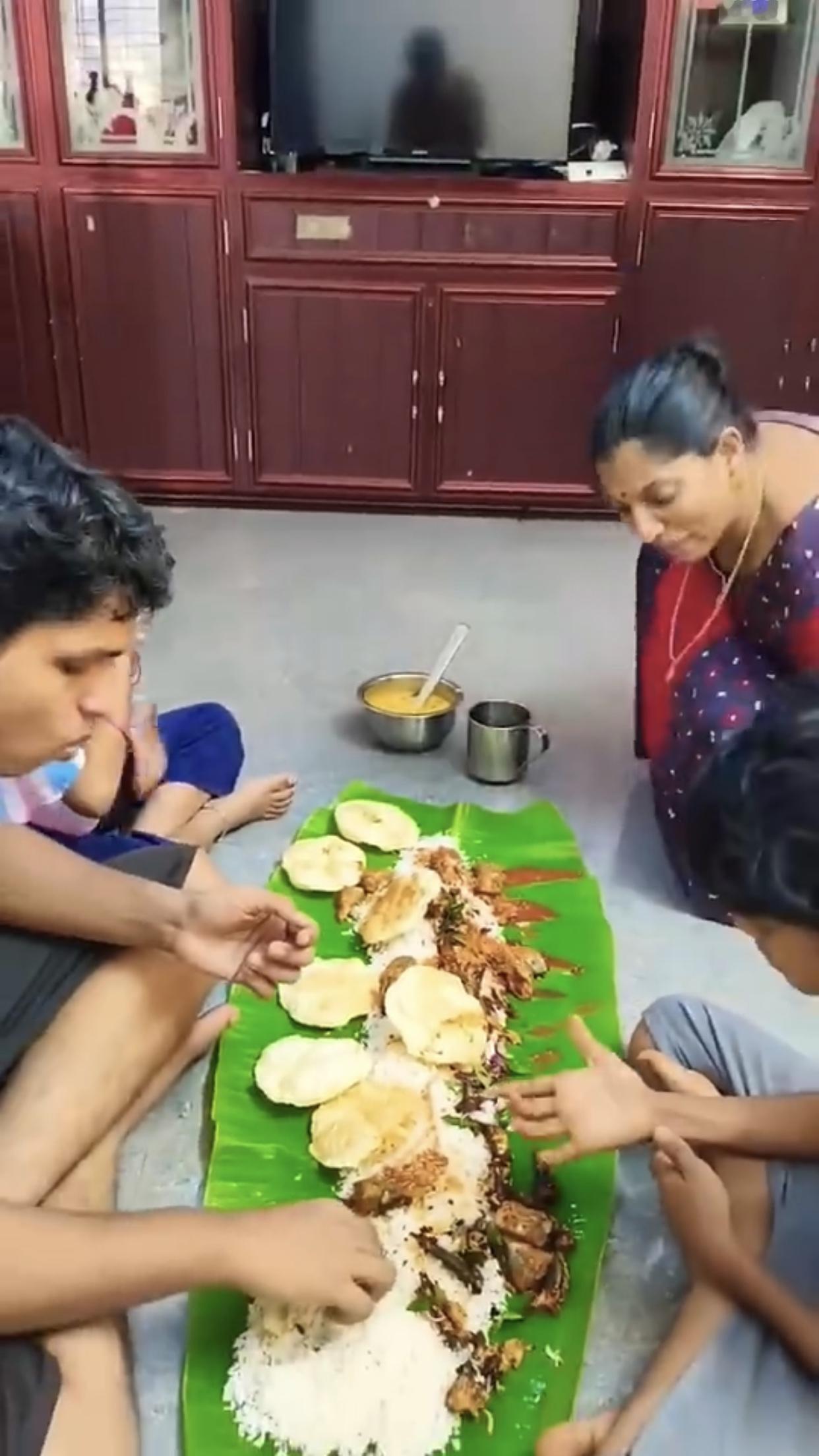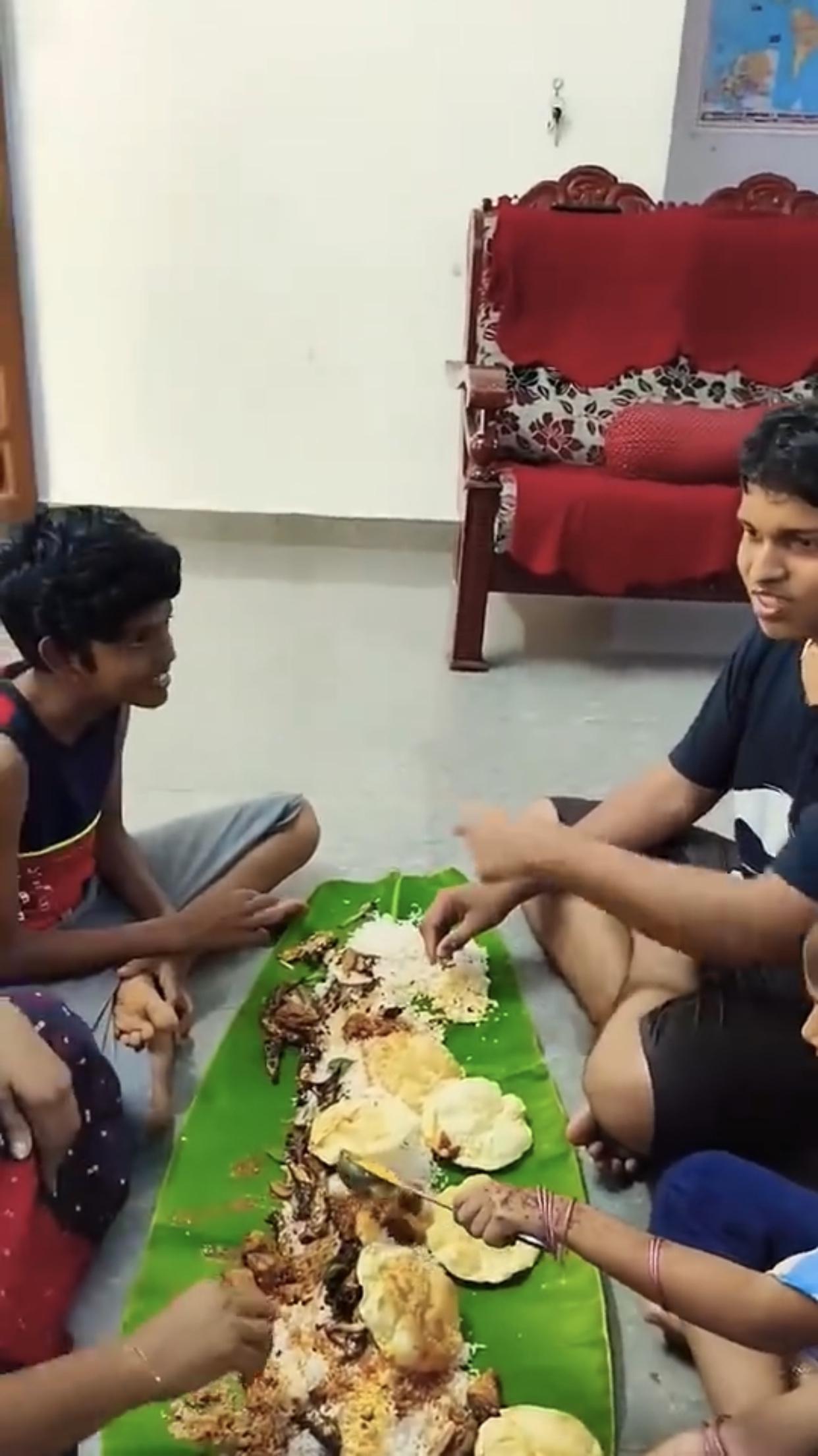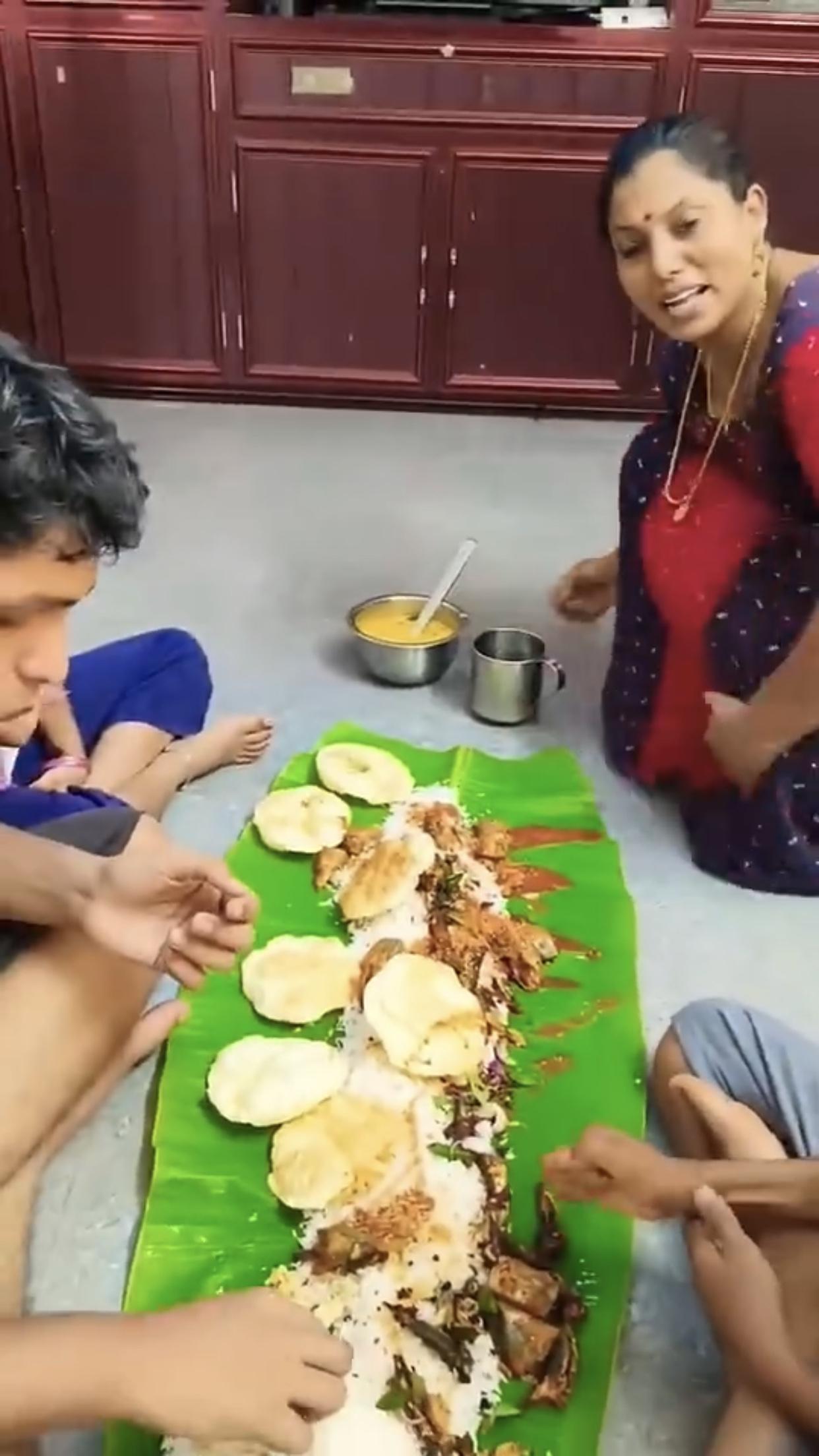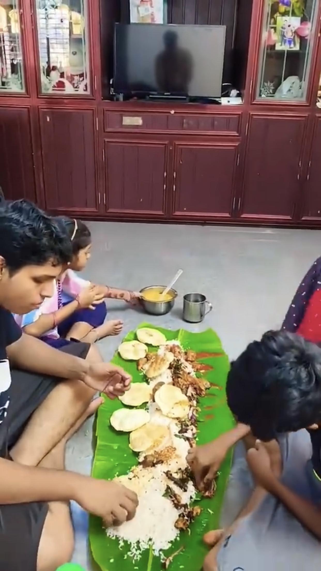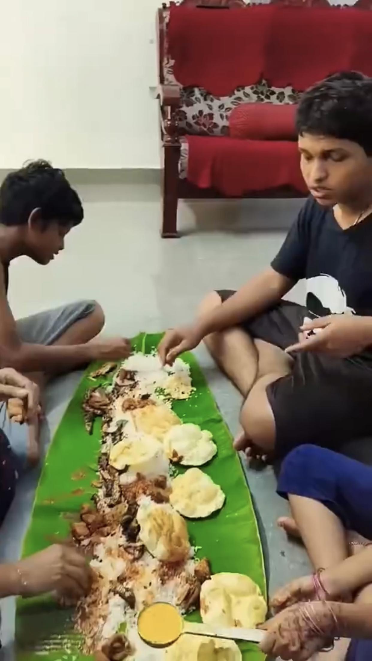 印度富人、高种性人的芭蕉叶大餐,只见他们全程用手抓取食物来吃,看样子吃得津津有味