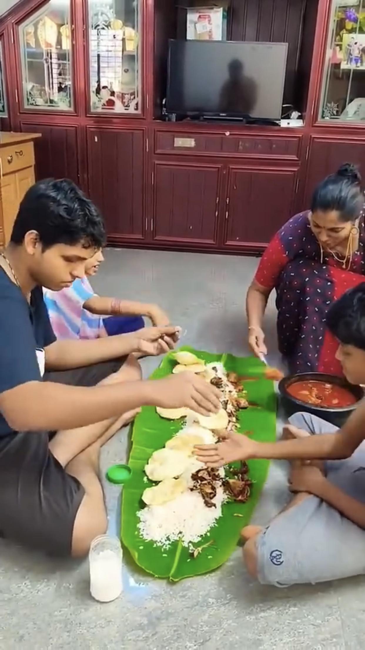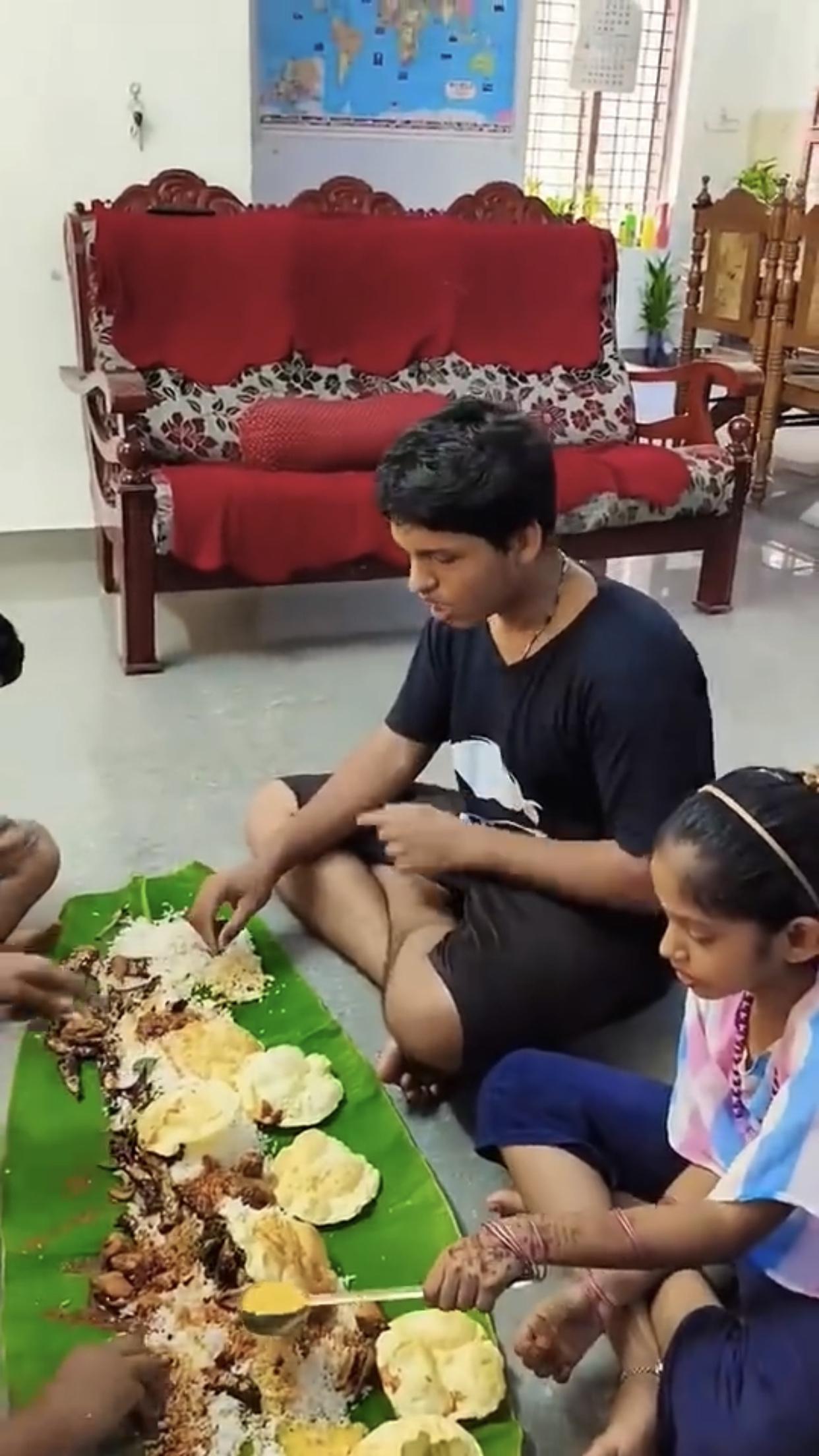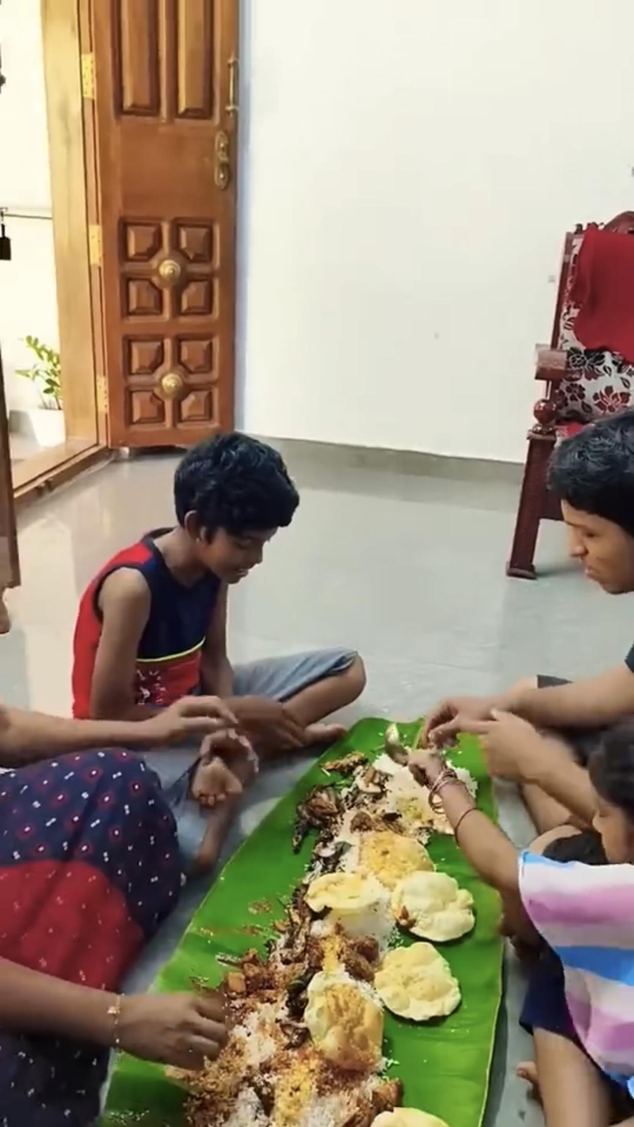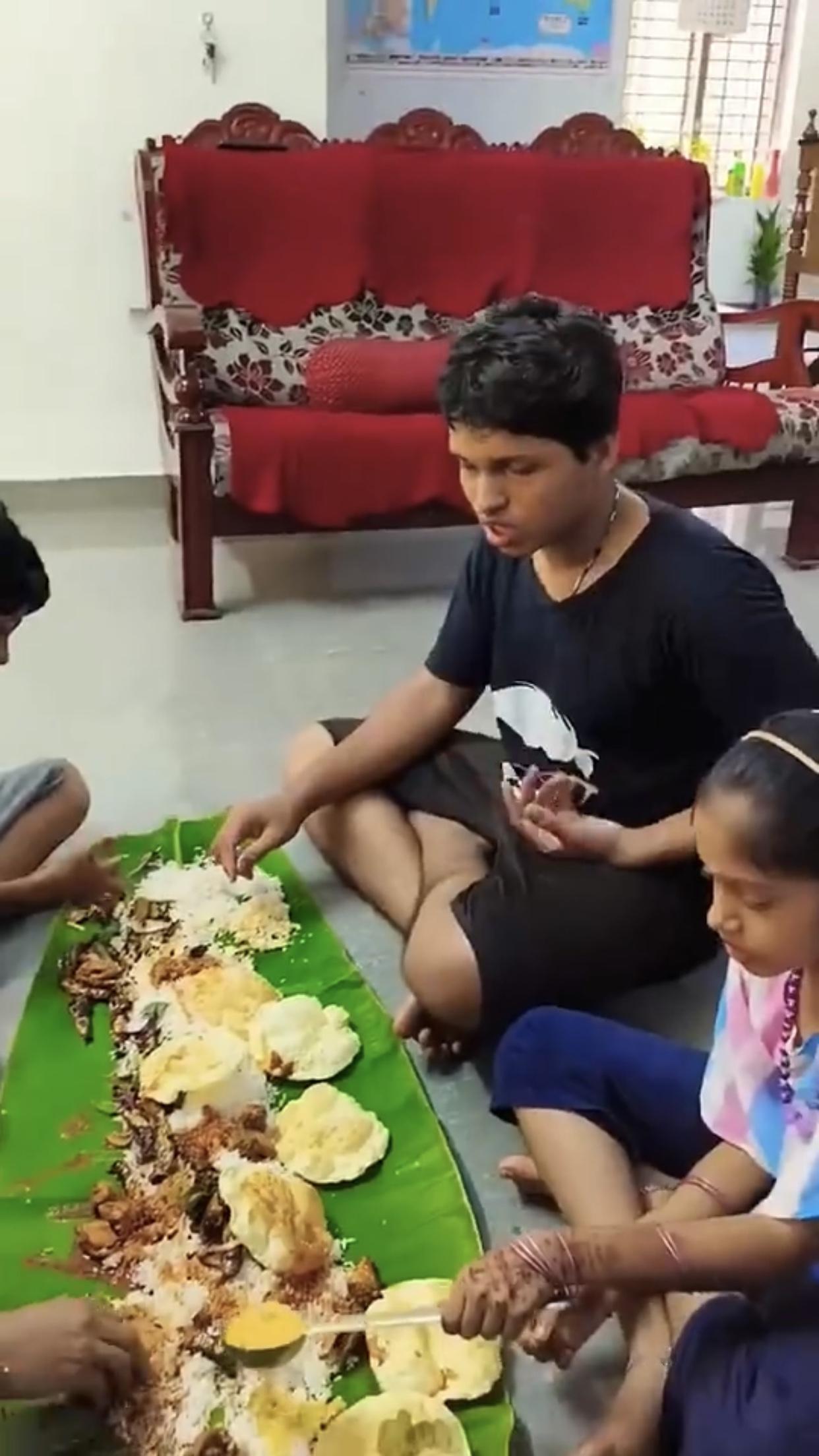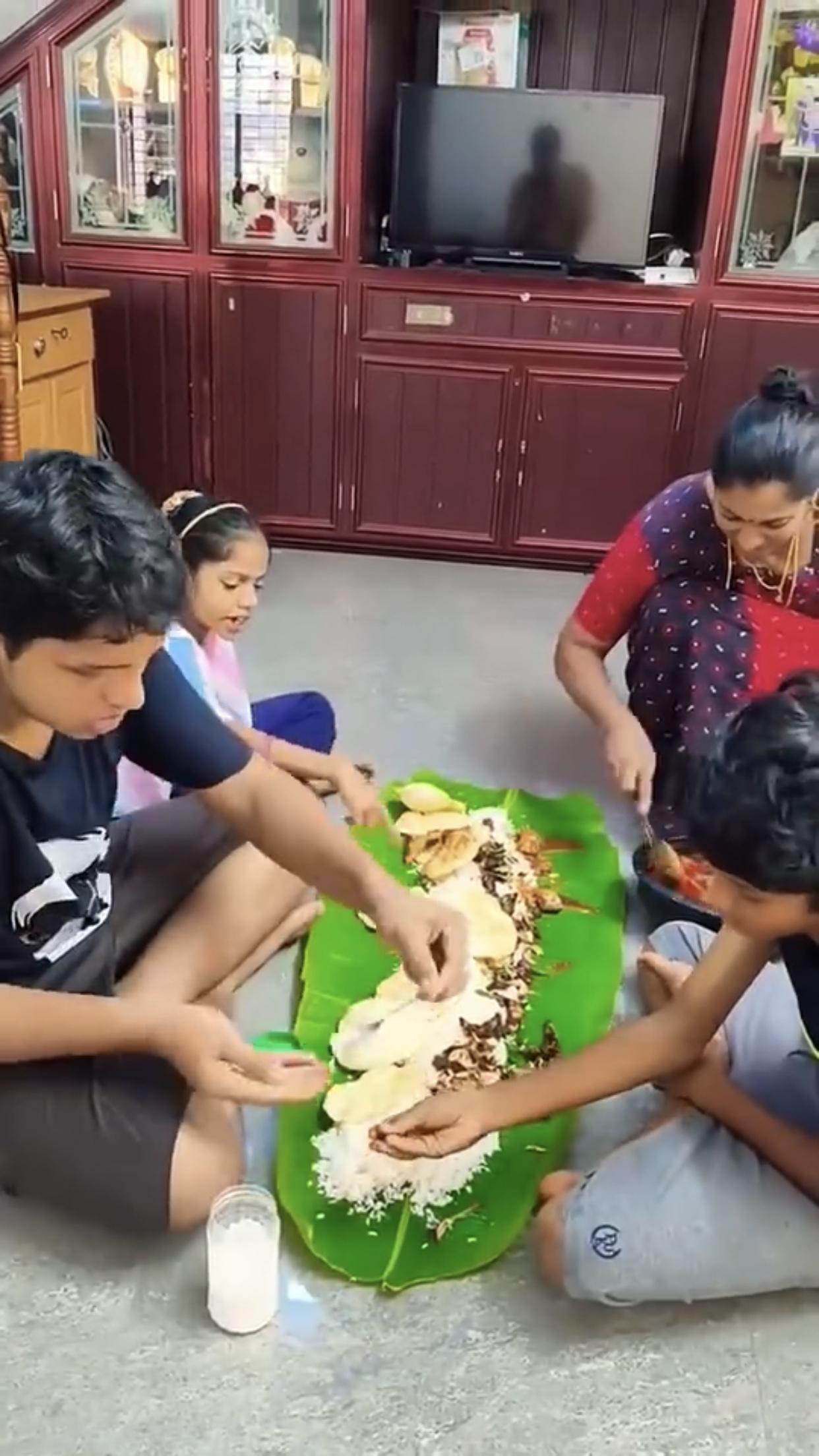 印度富人、高种性人的芭蕉叶大餐,只见他们全程用手抓取食物来吃,看样子吃得津津有味