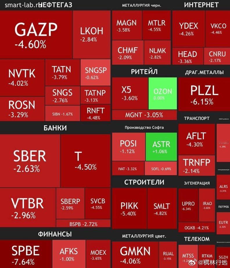 3、俄罗斯央行行长纳比乌琳娜:“形势严峻。俄罗斯六个地区已经耗尽所有储备,濒临金融灾难。”