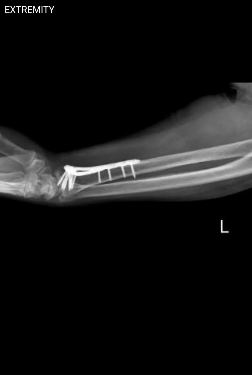 螺钉是11颗? 今天接诊了一位桡骨远端骨折术后的患者来我院取内固定。拍了X线后,