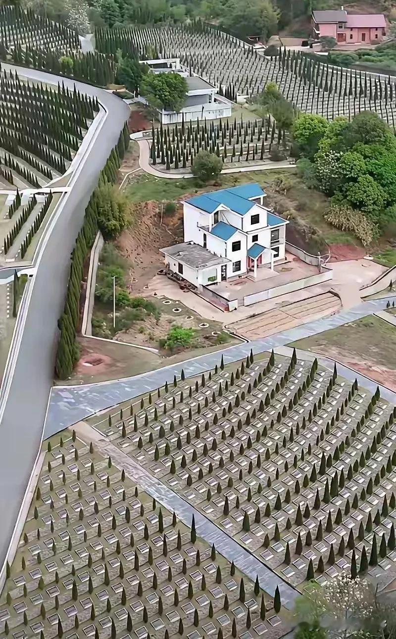图中的两座房屋,四周都被墓地给包围着,这种反差效果太强烈了。不知道房屋是属于村民居住的,还是其他用途的呢?与这么一大片墓地为邻,晚上会不会感到瘆得慌呢。