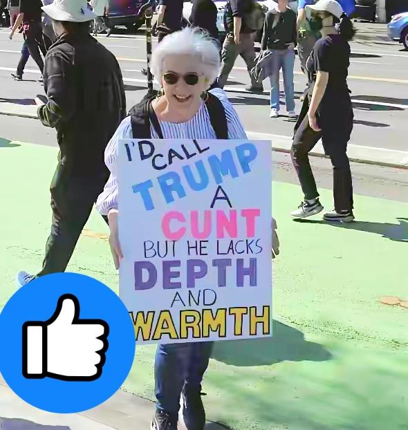 美国真的是一个言论非常自由的国家呀,游行示威队伍里面有一位老太太,手里面举的这个标语,写的实在是太“污”了,她骂特朗普是个什么玩意儿?有没有英语方面的高手?出来解答一下,实在太搞笑了。 这老太太手持的标语上赫然写着:“Trump is a c*nt”。这句俚语在英语中极具侮辱性,相当于中文语境里最粗鄙的人身攻击之一,直指人品低劣、令人厌恶。老太太这是把积压多年的不满,用最“炸裂”的方式表达出来了! **标语一出,全网玩梗** 照片迅速在社交平台疯传,有网友调侃:“这届美国选民,主打一个真情实感。”也有人感叹:“论骂人创造力,还得看美国老太太。”更有人直言:“言论自由是真自由,搁某些国家早被请去喝茶了。” **背后情绪不简单** 看似是句粗口,其实背后是美国社会撕裂的缩影。不少民众对特朗普的言行、政策积怨已深,才会用如此直白的方式宣泄不满。这已不只是政治反对,更是情绪上的强烈反感。 **你怎么看这种表达方式?** 是“话糙理不糙”,还是过于粗鄙失度?欢迎在评论区理性讨论~ 美国老太太街头硬核骂特朗普