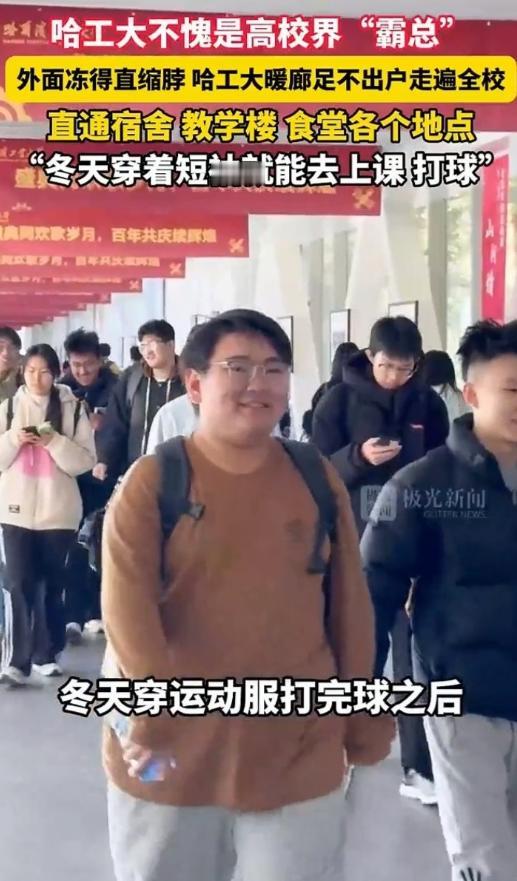 愿中国所有的大学,都是哈工大!介绍的是哈工大的“暖廊”;我注目到的,却是哈工大学子,眼中睿智和自信的光。哈工大在东北之北,冬天,气温自然是极低的。刷到一条,介绍哈工大,冬天可穿秋衣走遍哈工大全校的“暖廊”视频。目光却没能聚焦在“暖廊”之上。 常去工大附近这几年好点了以前百脑汇一眼就能看出哪个是工大得统一深色衣服戴眼镜清瘦低头走路步伐比较快 对于哈尔滨本地人士,穿足衣帽和鞋袜,即便最寒冷夜晚出游冰雪大世界也属于正常行为,人类具有足够的抗寒能力,该校花掉如此大经费,修建这类暖棚是要把学生养成温室花朵么? 对此你怎么看?