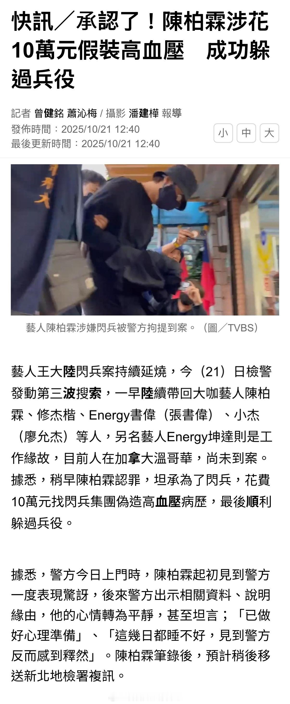 据台媒报道,陈柏霖、修杰楷已承认逃兵役。​​​