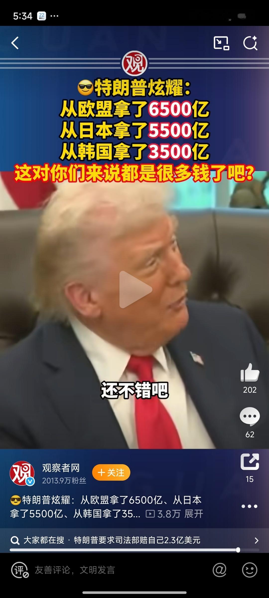 特朗普吹嘘从各国拿到巨额关税资金特朗普吹嘘的“巨额关税资金”,本质是转移矛盾的话术。他刻意放大虚假收益,却对现实困境视而不见:美国海关因政策频繁变动系统故障频发,人员缺口近6000名,难以承载征税压力 。经济学家早已指出,关税收入远不能弥补财政缺口,其“取代所得税”的设想更是天方夜谭 。这场吹嘘终究掩盖不了政策的失当与对民生的损害。